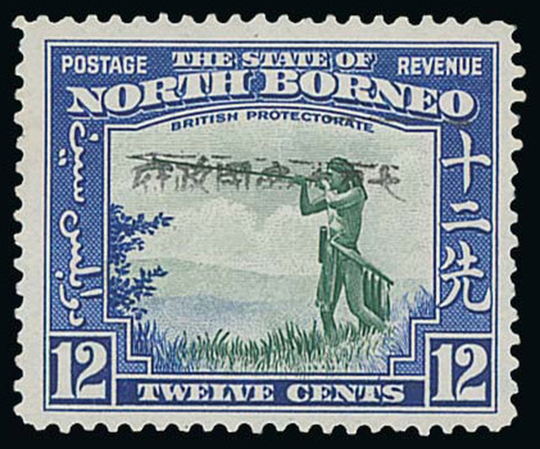 12c. green and bright blue with black overprint, unused with large part original gum, fine. B.P.A. Certificate (2019). ISC J8a, $3,000; S.G. J8a, £1,000. Photo
