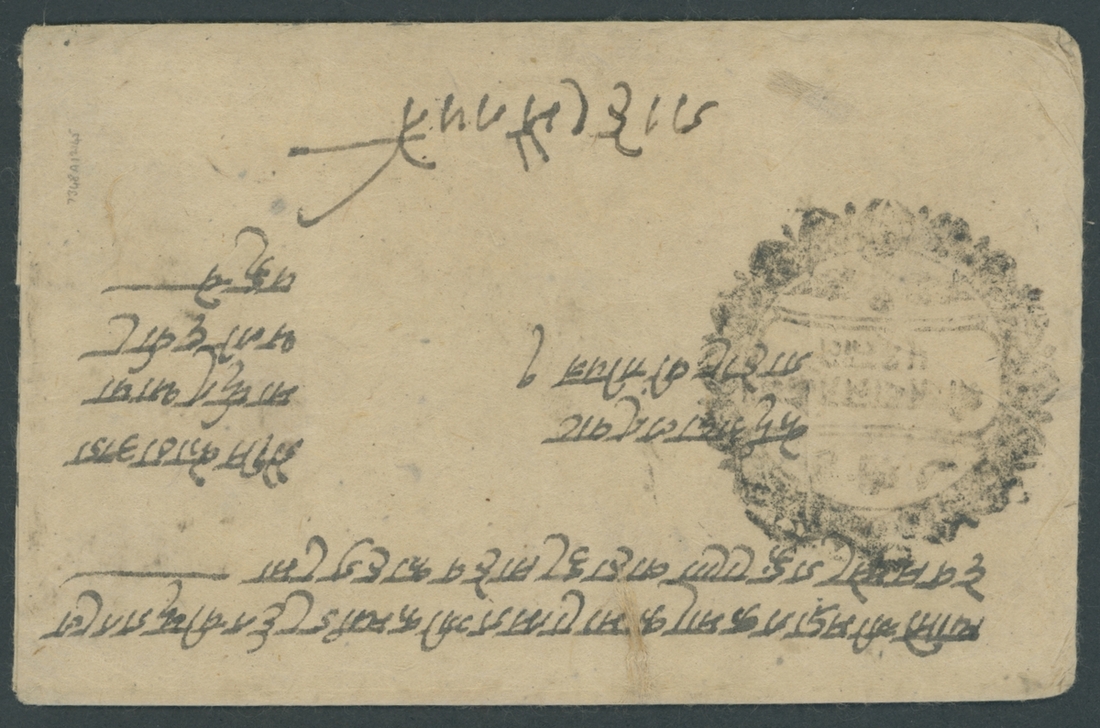 Kerong Court: 1898 stampless envelope to Katmandu bearing the large ornate seal of the Kerong Court, the reverse with Rasuwa datestamp and Trisuli transit and small personal seal. An early date. Photo