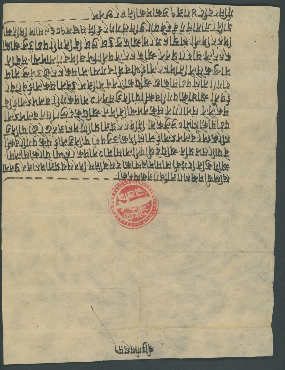 1812 (Nov.) letter with the red dagger seal of King Girbanu, sent to the Newari traders in Tibet and translated in part as, "To Newari traders in Kuti, Shigatse and Lhasa, up till now you have had two captains in Lhasa ... last year they returned ... in their place we sent you only one Captain ... and now you say he is not enough for so many Newari traders ... so we now send and junior Captain", with the original cover. a scarce and interesting letter. Photo