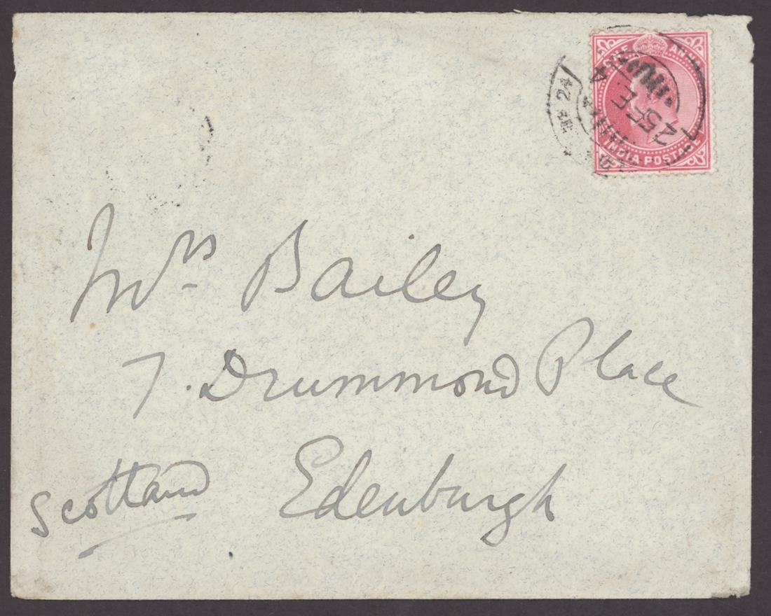 Field P.O. No.24: 1904 (25 Feb.) envelope to Mrs Bailey in Edinburgh bearing India K.E.VII 1a. tied by a good strike of type B2 "