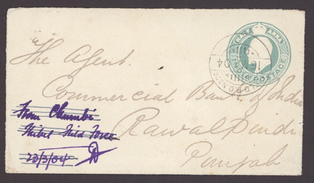 Field P.O. No.26: 1904 (16 Mar.) India K.E.VII ½a. stationery envelope to Rawalpindi cancelled by a very fine strike of the type B2 "