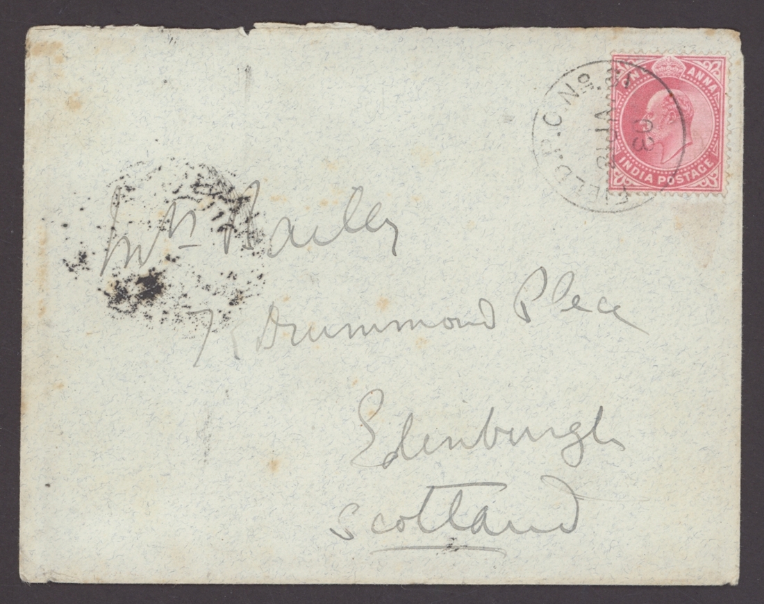 Field P.O. No.81: 1904 (21 Jan.) Bailey envelope to Edinburgh bearing India K.E.VII 1a. tied by a very fine strike of the type B1 "