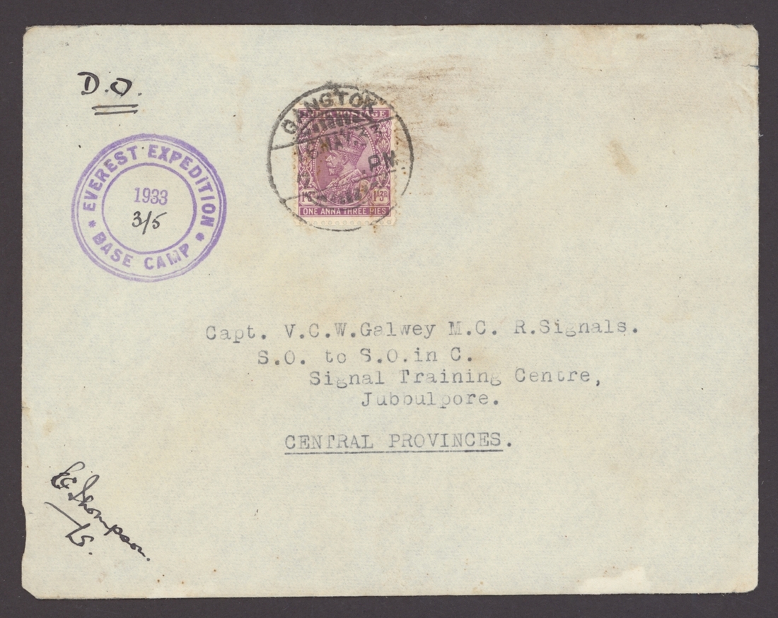 1933 (3 May) envelope to Jubbulpore bearing India 1a.3p. tied by Gangtok c.d.s. (16.5) with a fine strike of the circular "