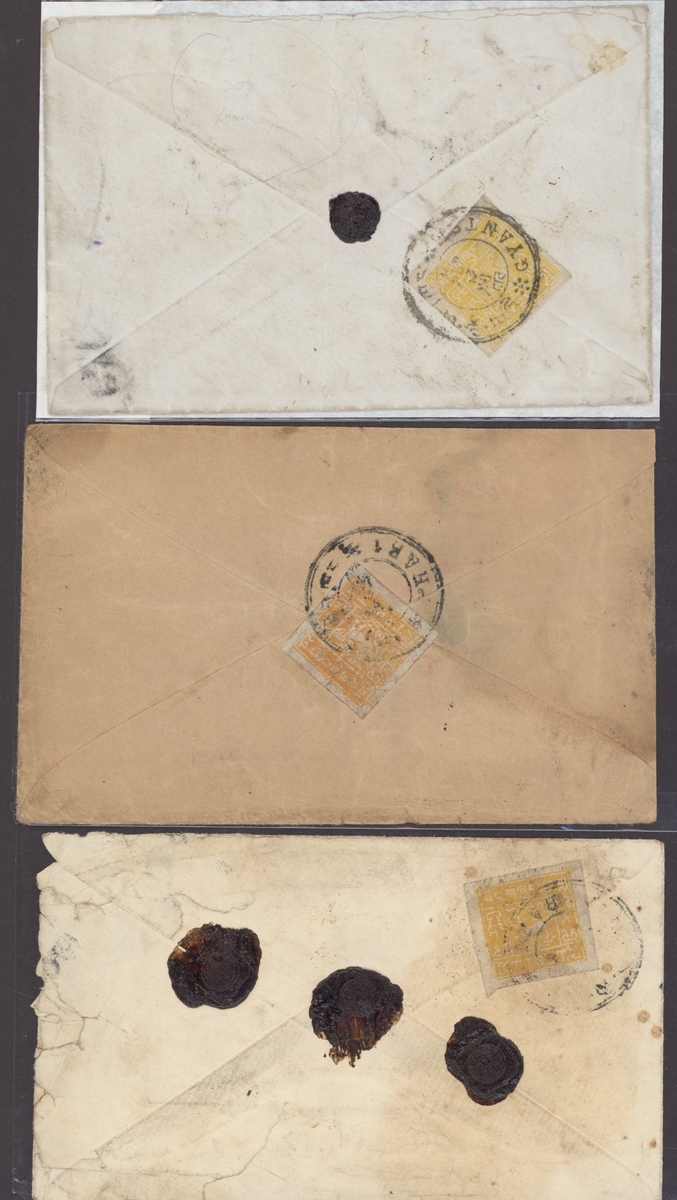 1933-35 (c.) a group of single franking covers with ½tr. in shades of yellow-orange or pale yellow cancelled by with Phari or Gyantse postmarks; condition is mixed. (3 covers)