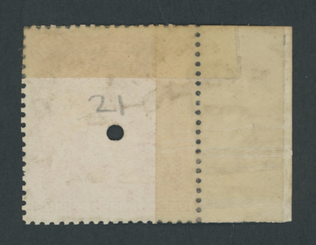 £100 cherry-red marginal, from the left of the sheet, unused, very well centered, central 2mm Waterlow security punch, with re-inforcement on the reverse. From the printer's archives. Rare. See S.G. footnote. Photo.