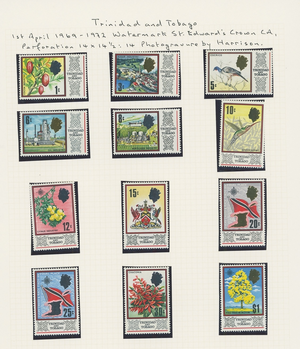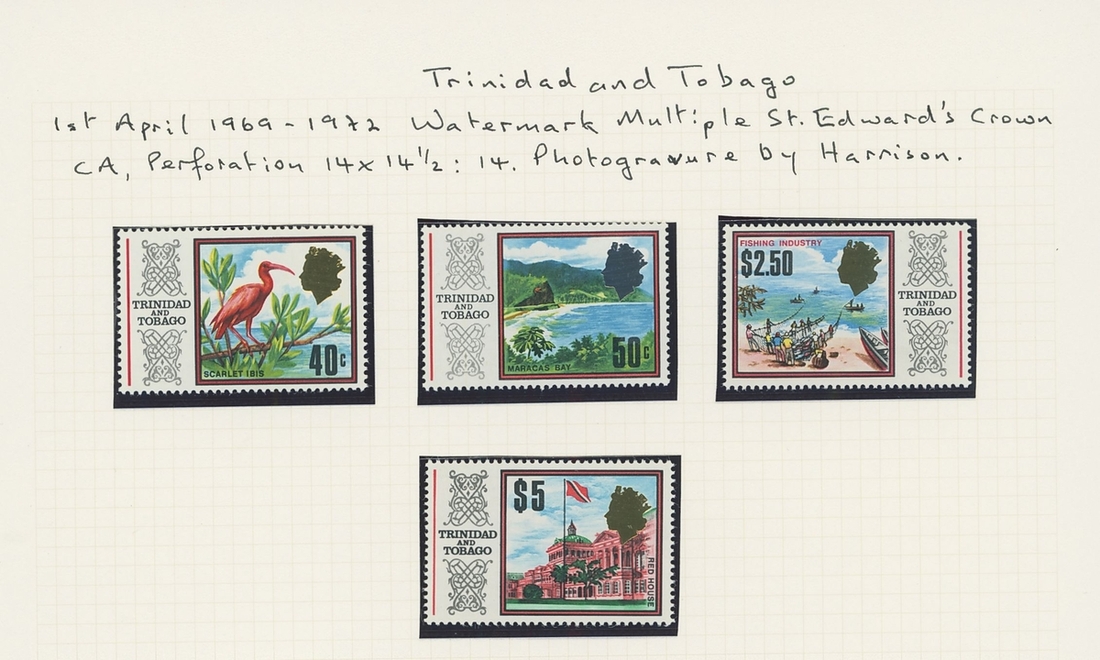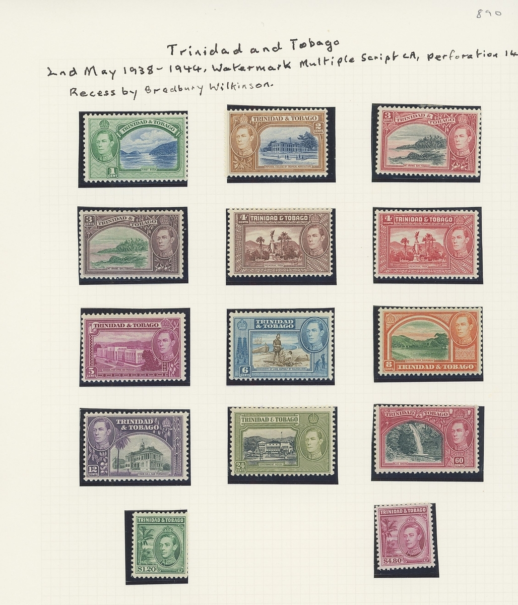 1938-44 mint selection on album leaves, comprising 1938-44 set, 1948 R.S.W. set in marginal blocks of four, 1953-59 set in blocks of four, 1960-67 set, 1962 Independence set, 1969-72 set, fine, unmounted mint.