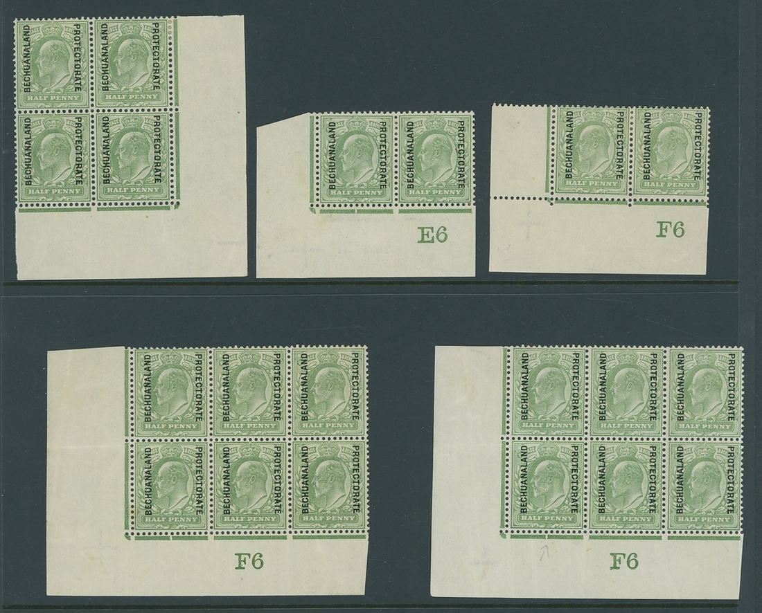 ½d. yellowish green, a group of mint mainly Control multiples (5) comprising two lower left corner blocks of six both with control