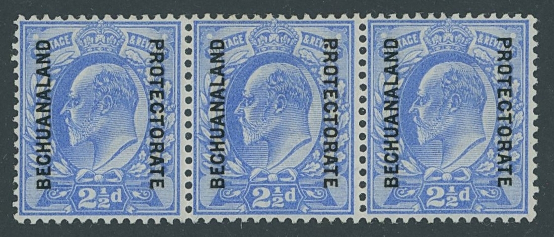 2½d. ultramarine, horizontal strip of three, the middle stamp variety stop after