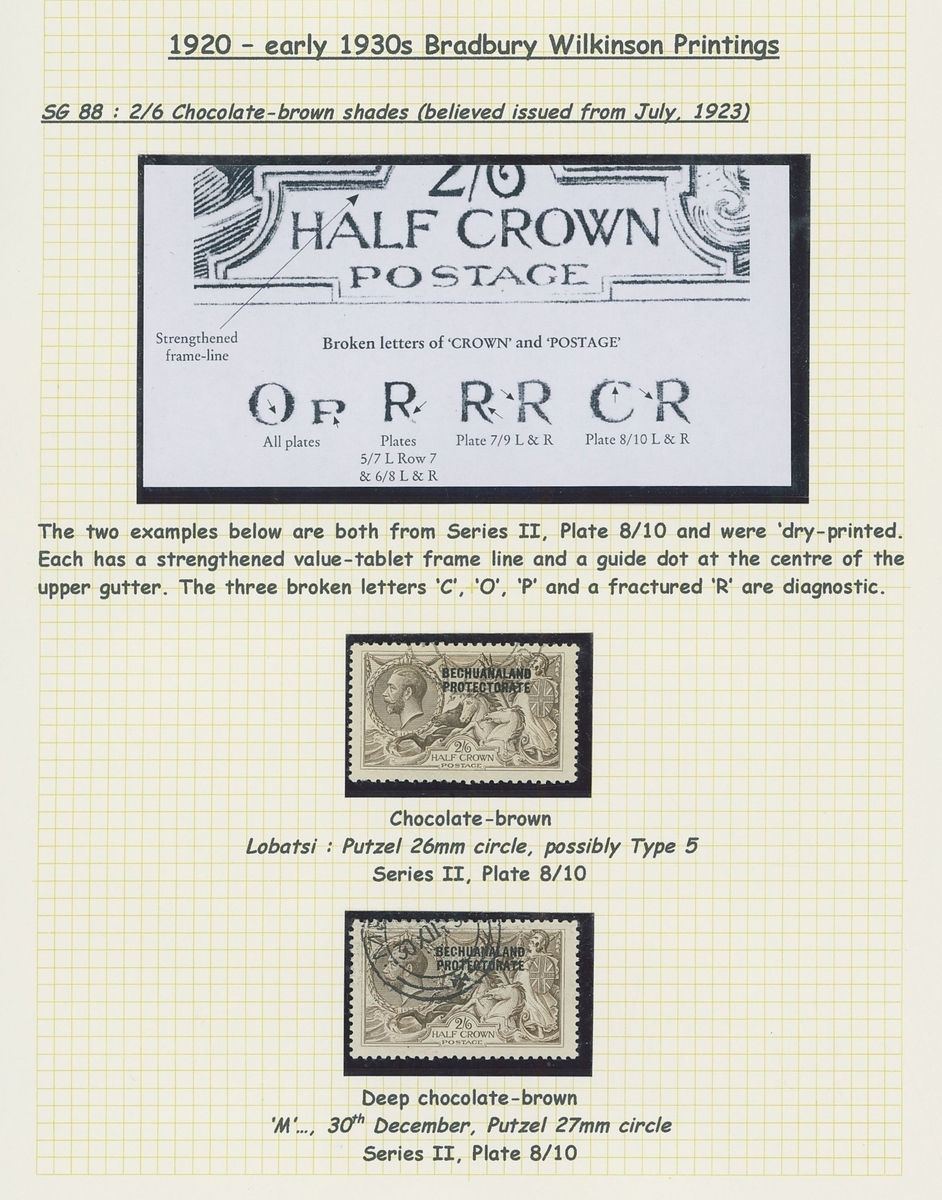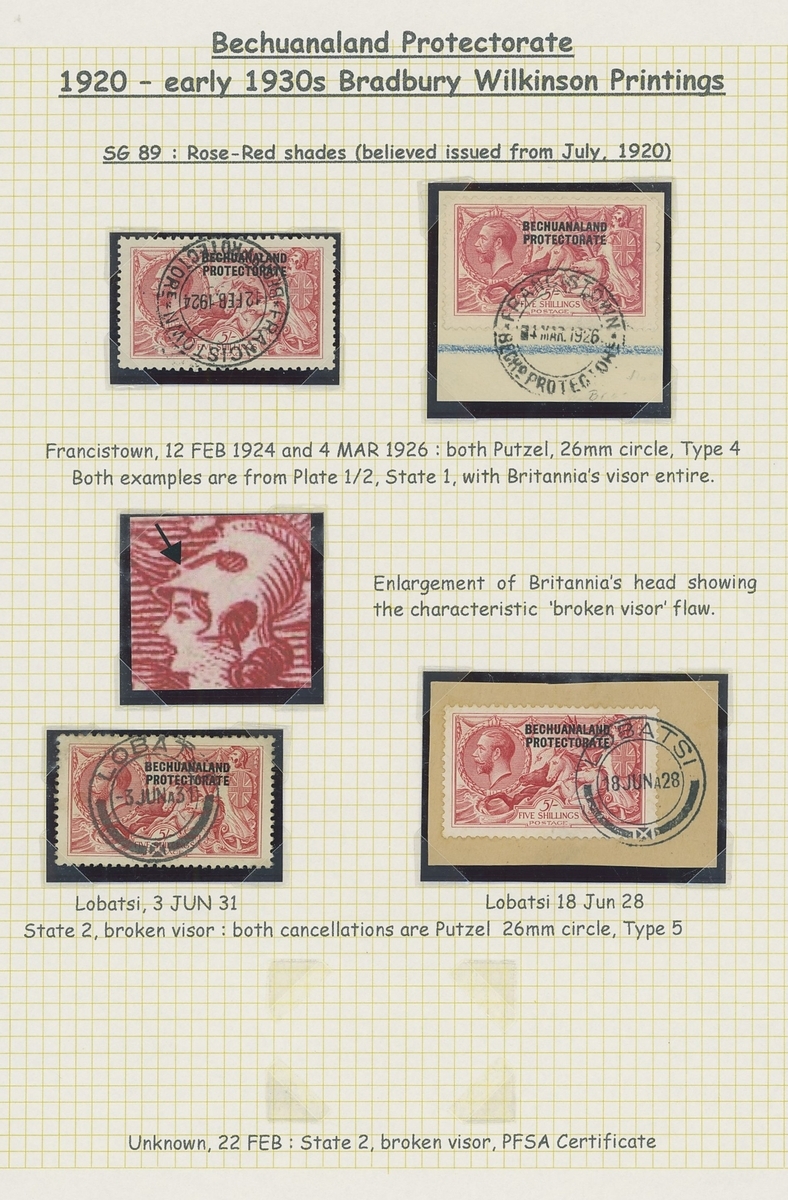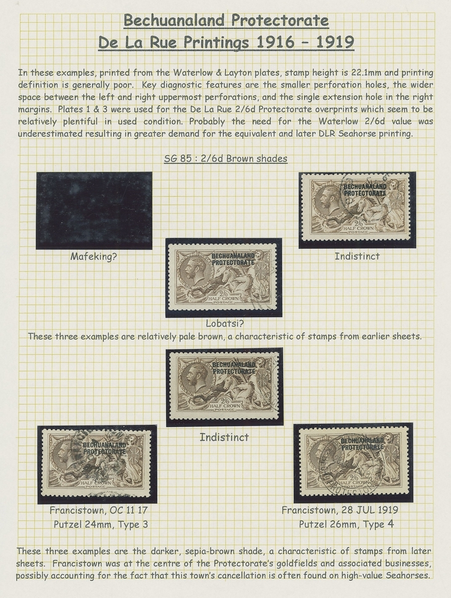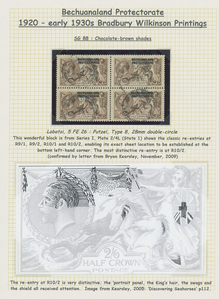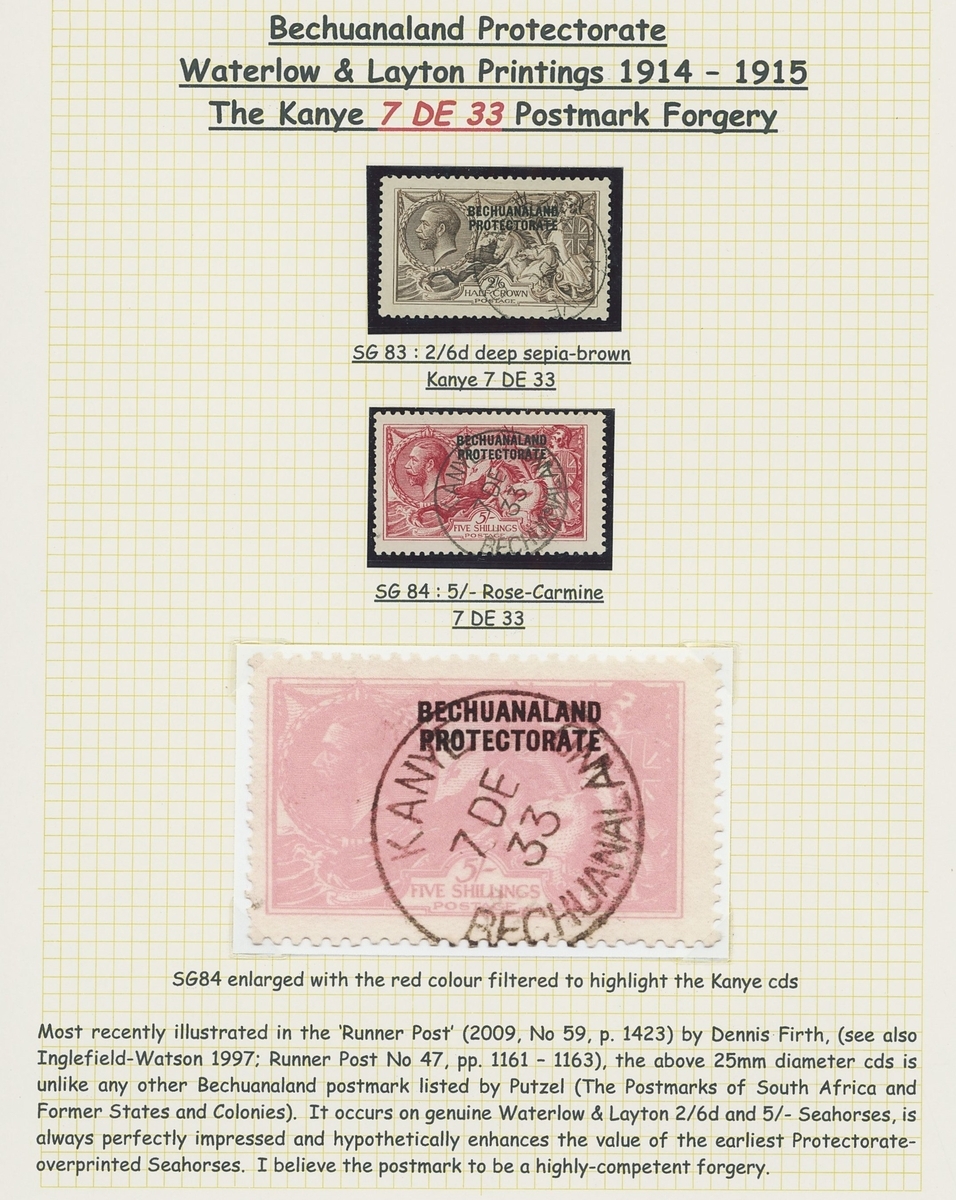 1914-23 balance of the specialised 'Weston' mint and used Seahorse collection written-up on album pages, commencing with a checklist for identifying the printings and then with a group of each printing, Waterlow 1914-15 2/6d. used (shades, one with BPA cert.), 5/- rose-carmine mint and used (6 including a horizontal pair and with a variety of cancellations), 5/- rose-carmine variety overprint double, one albino, an example of the 2/6d. and 5/- both showing forged