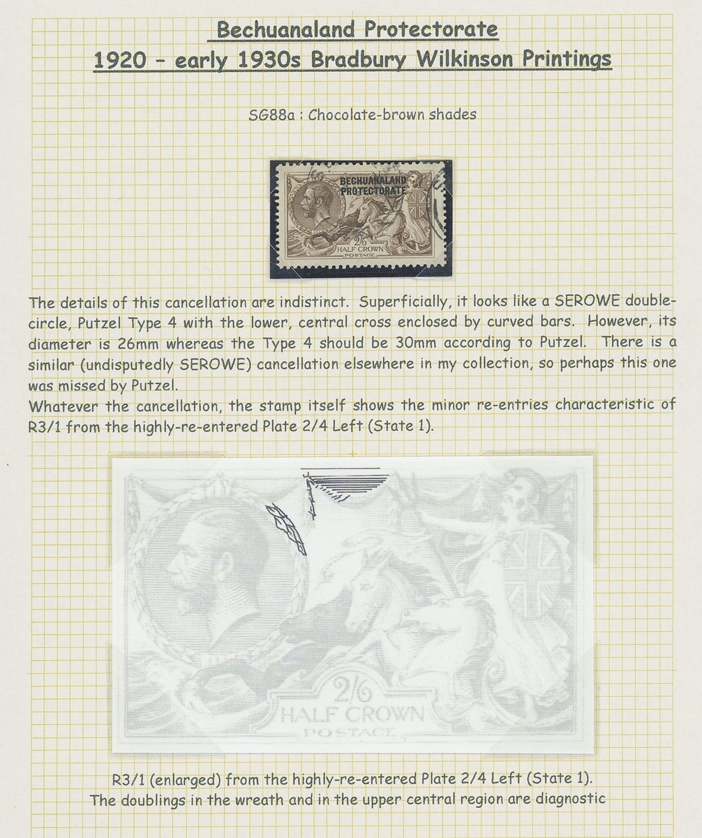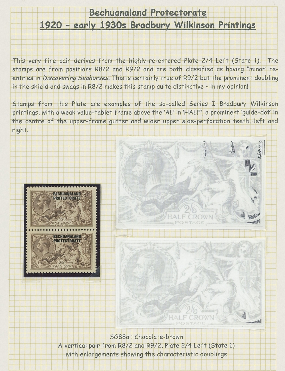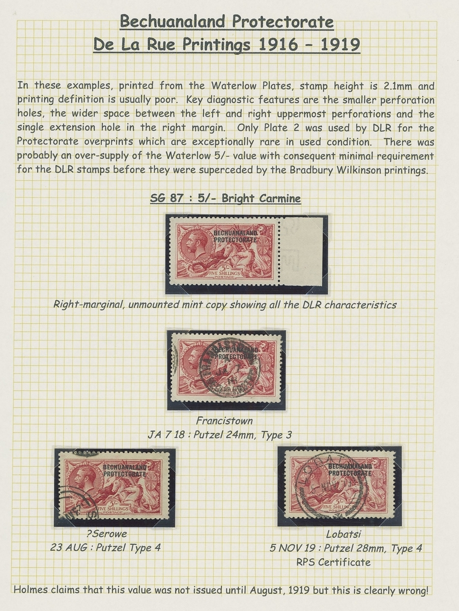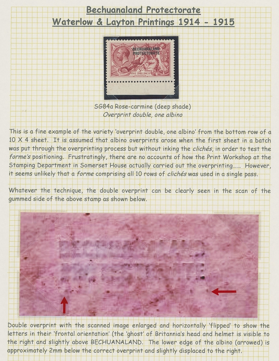 1914-23 balance of the specialised 'Weston' mint and used Seahorse collection written-up on album pages, commencing with a checklist for identifying the printings and then with a group of each printing, Waterlow 1914-15 2/6d. used (shades, one with BPA cert.), 5/- rose-carmine mint and used (6 including a horizontal pair and with a variety of cancellations), 5/- rose-carmine variety overprint double, one albino, an example of the 2/6d. and 5/- both showing forged