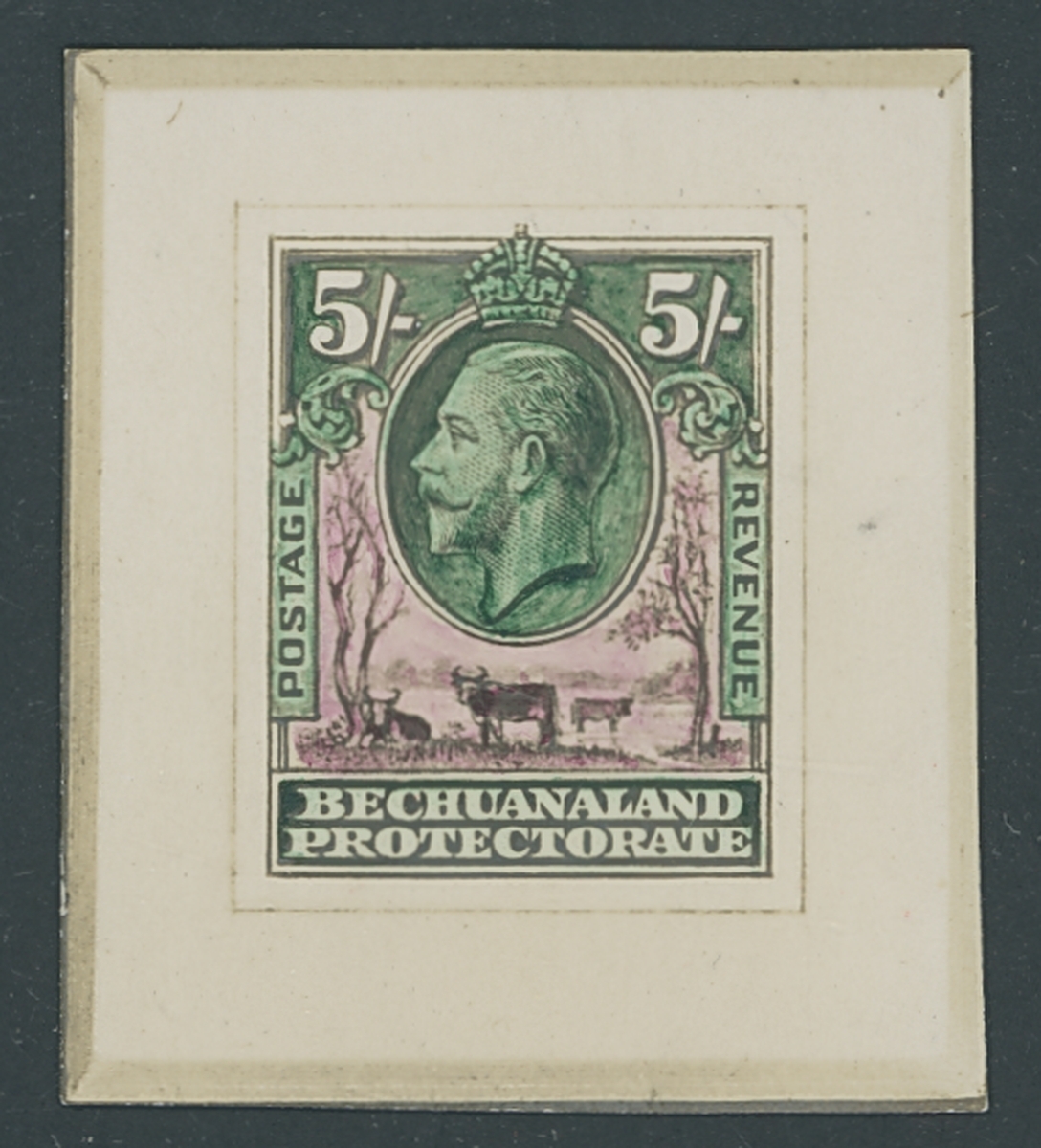 1931 De la Rue essay for a proposed 5/- duty featuring cattle and trees and inscribed