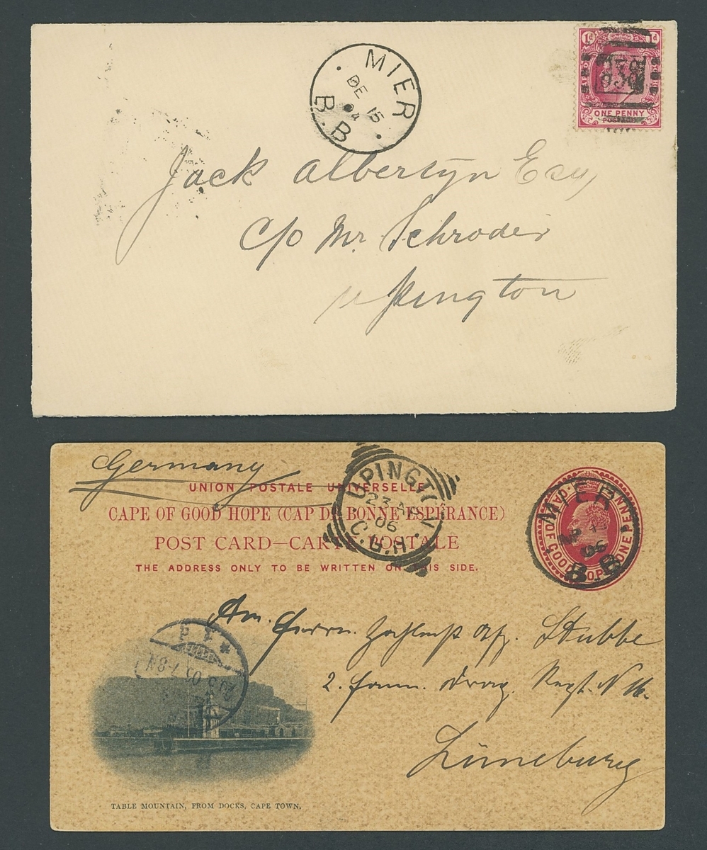 1904 (15 Dec.) envelope to Upington bearing KE Cape of Good Hope 1d. cancelled with barred numeral