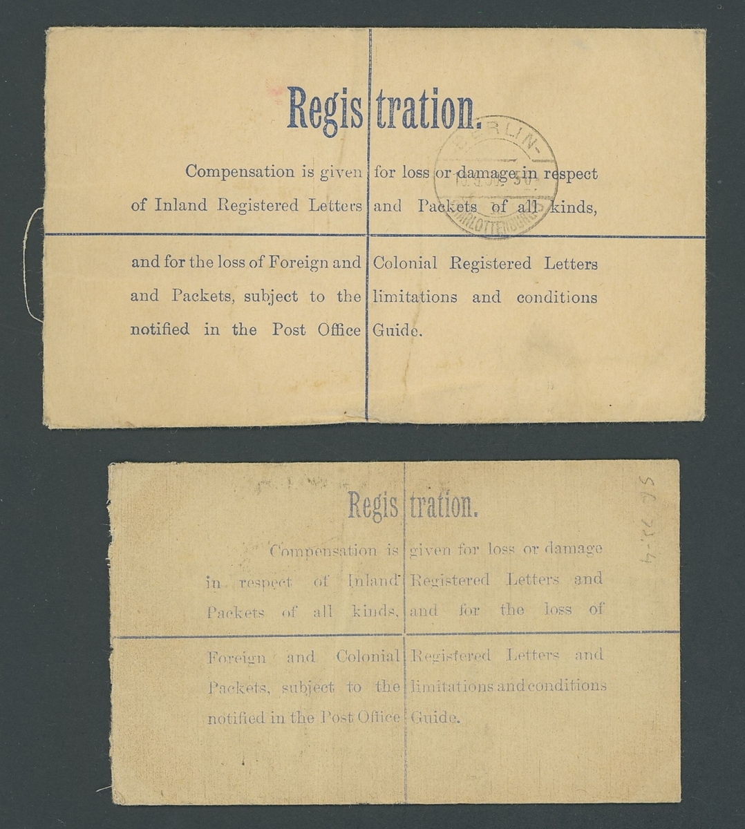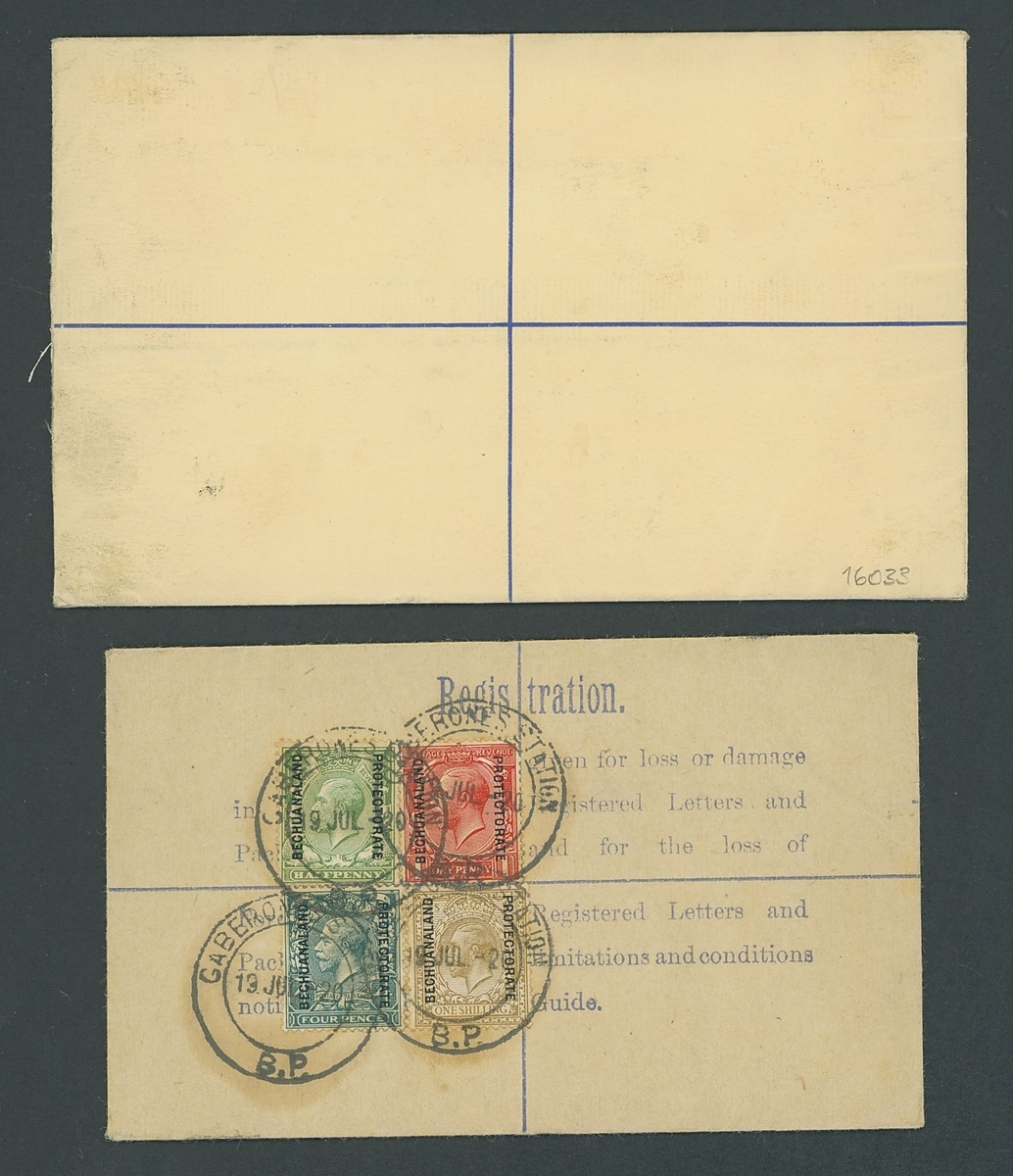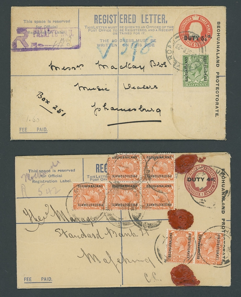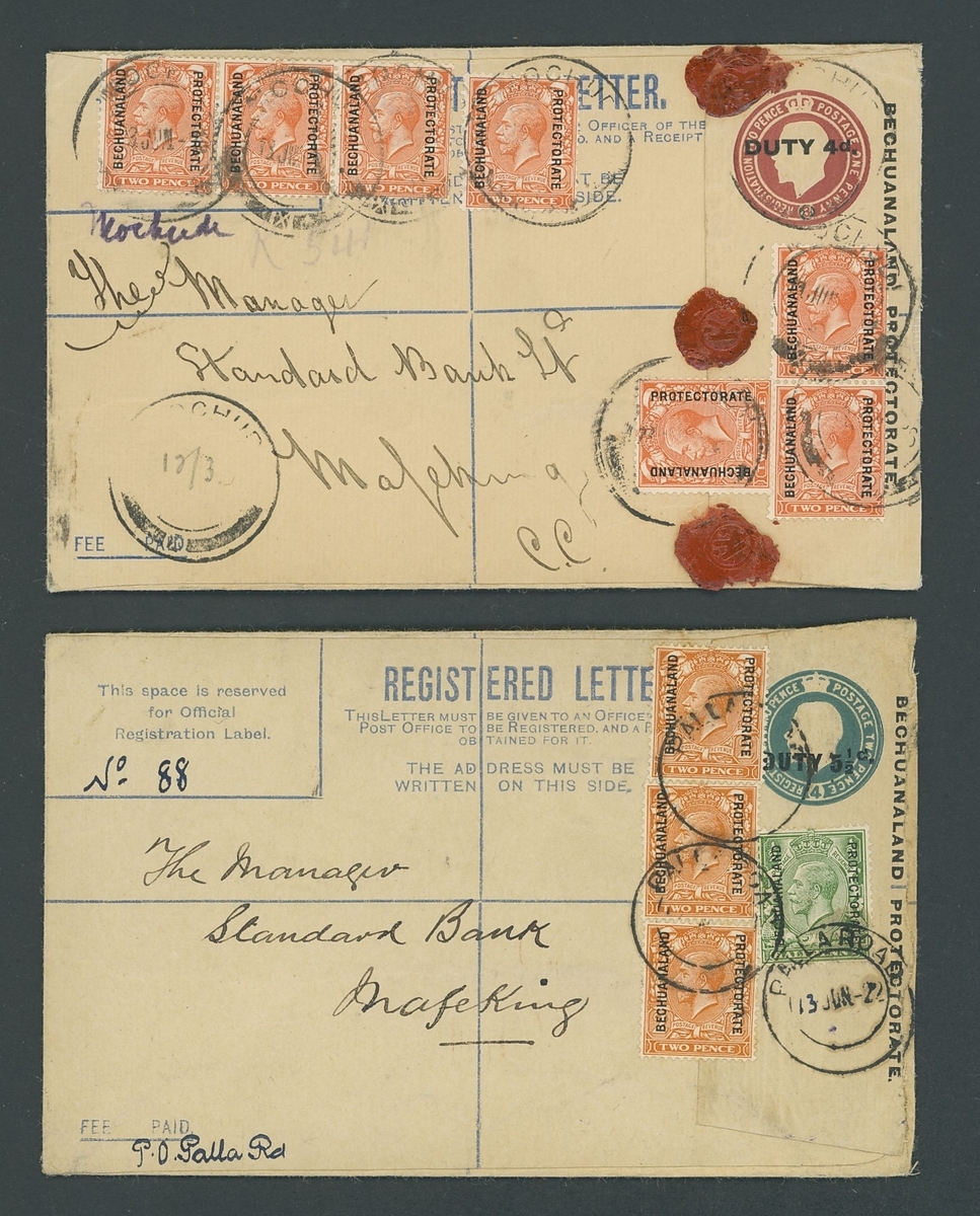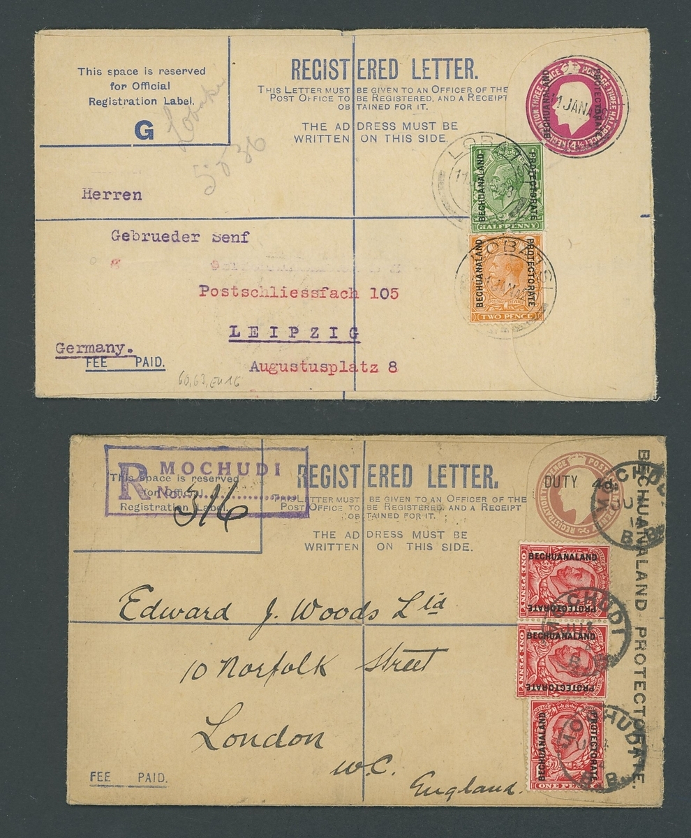 A collection (19) of Registered Letter postal stationery envelopes, some rare types, all uprated with KGV adhesives, with a range of frankings, destinations and postal markings including 4d. envelope uprated with 1932 1d. tied by scarce