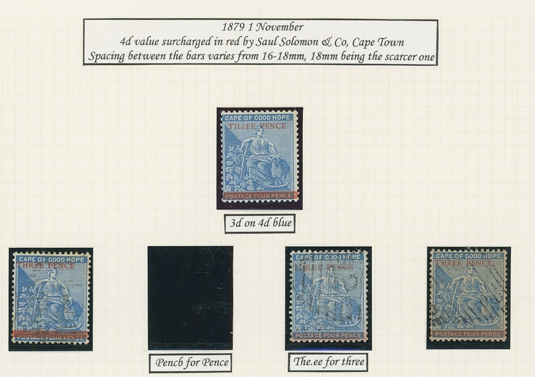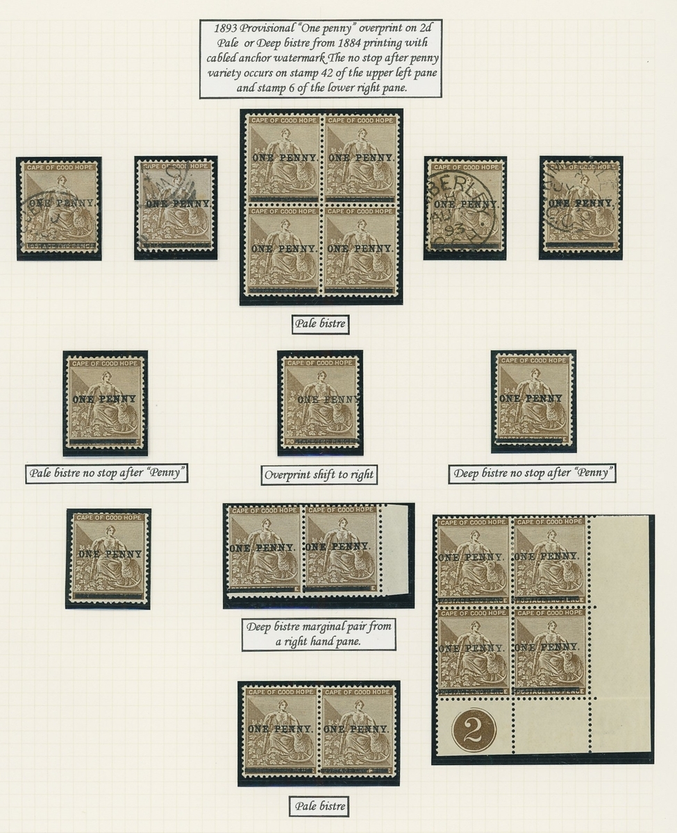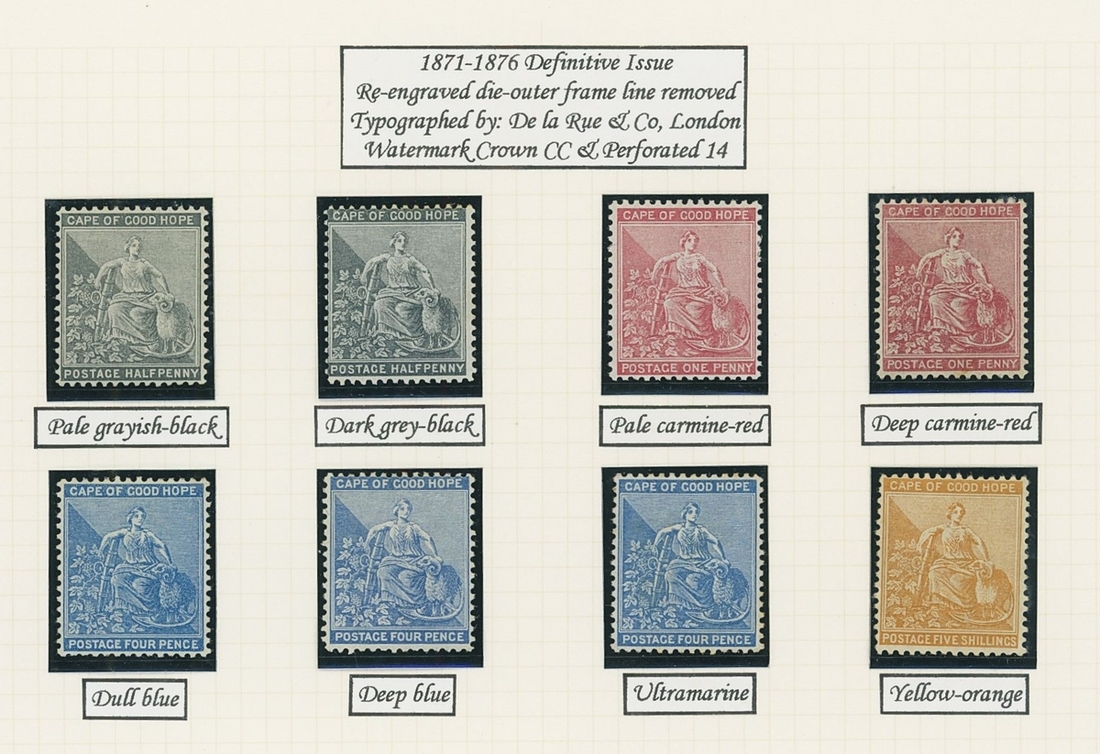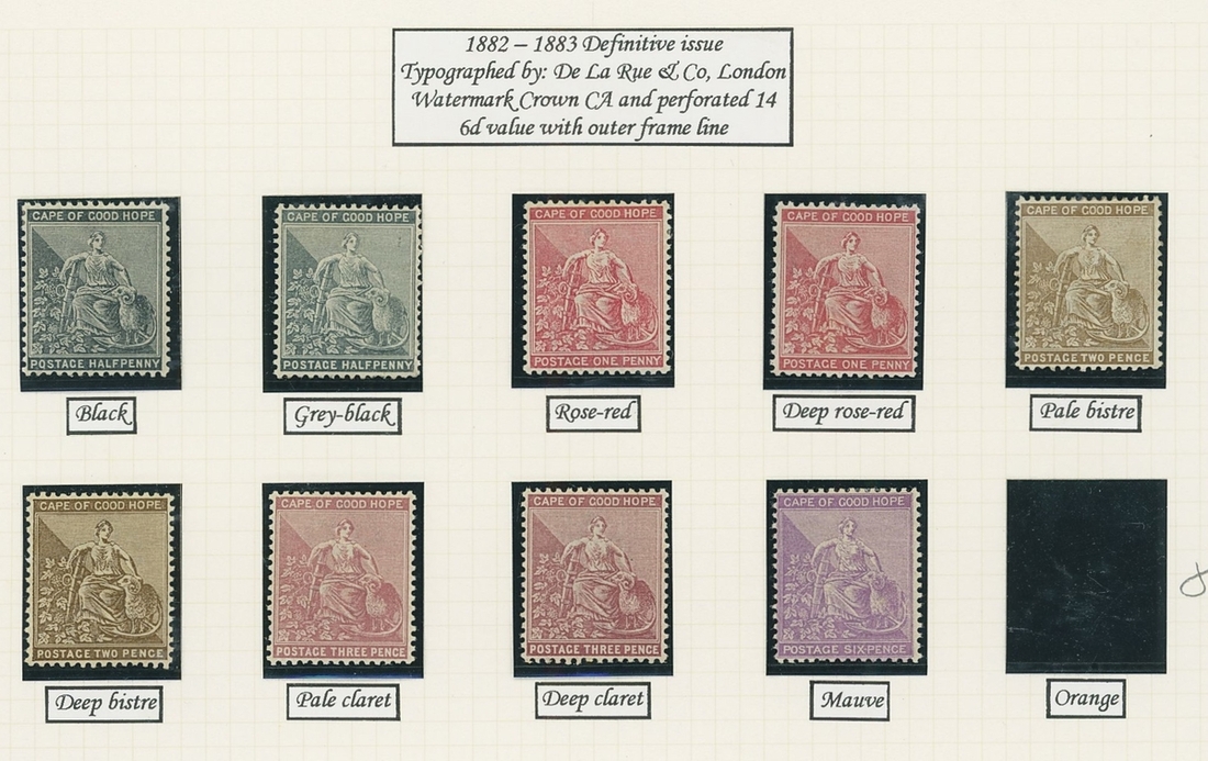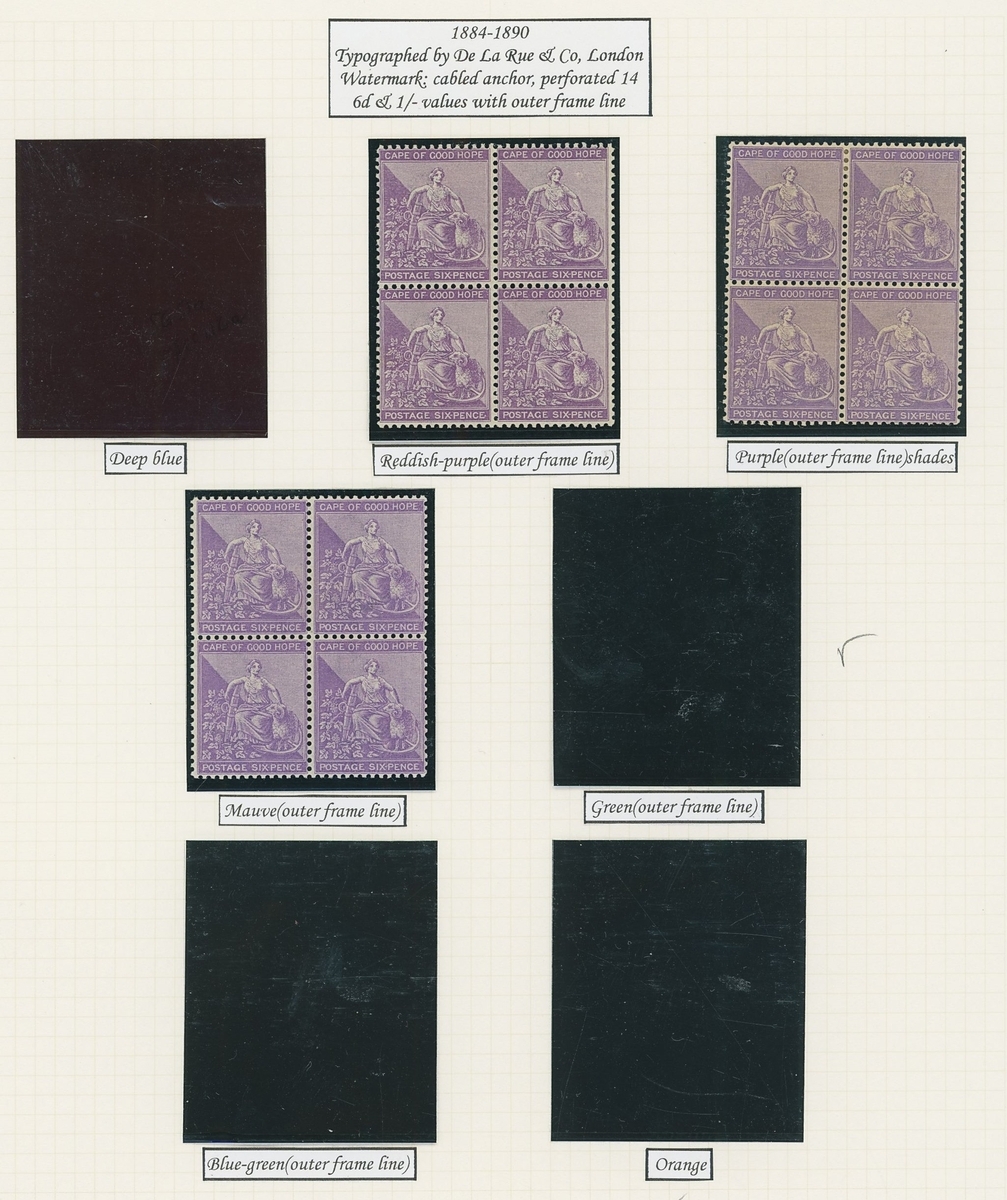 1864-1904 mainly mint Hope seated collection written up on Frank Godden album pages including 1864-77 shades with 1d. (4), 6d. (4) and 1/- (2), 1871-76 CC set to 1/- including ½d. (2), 1d. (2) and 4d. (3), 1874-76 1d. on 1/- green (3), 1879 3d. on 4d. mint (2) and used (2, including one variety