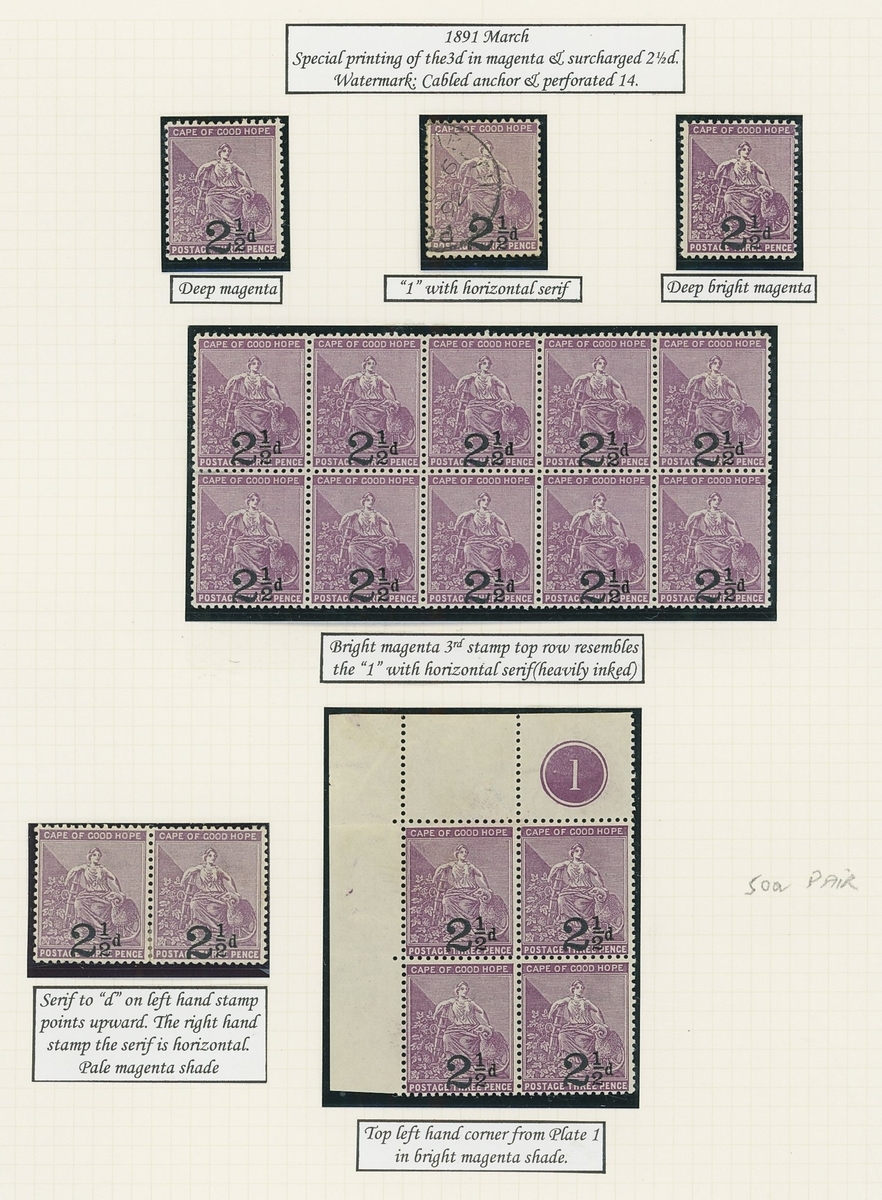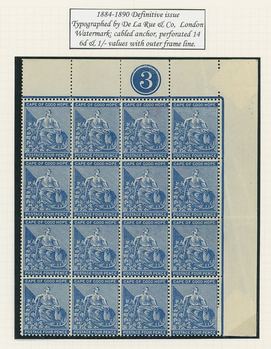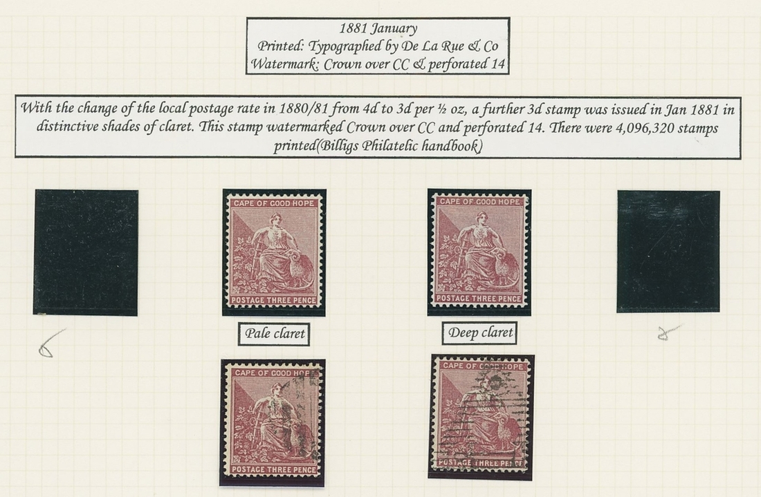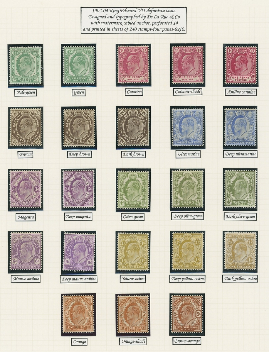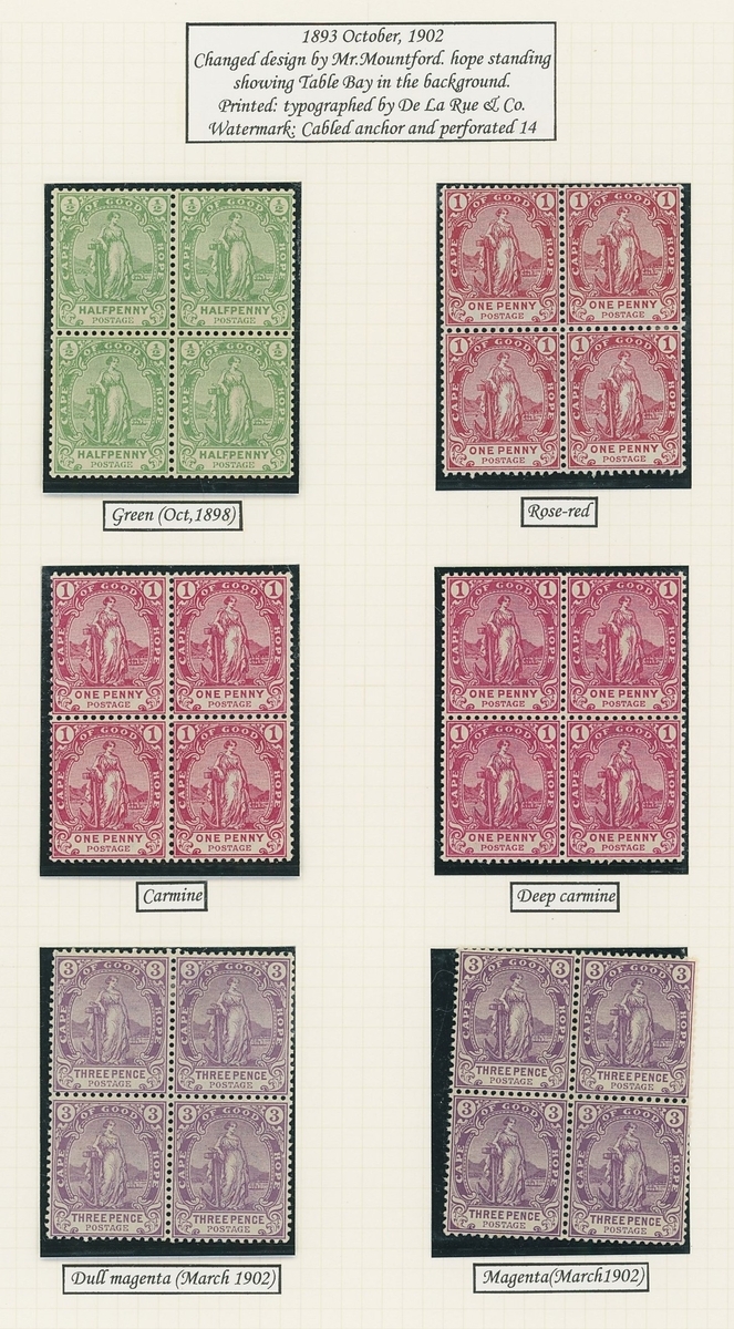 1864-1904 mainly mint Hope seated collection written up on Frank Godden album pages including 1864-77 shades with 1d. (4), 6d. (4) and 1/- (2), 1871-76 CC set to 1/- including ½d. (2), 1d. (2) and 4d. (3), 1874-76 1d. on 1/- green (3), 1879 3d. on 4d. mint (2) and used (2, including one variety