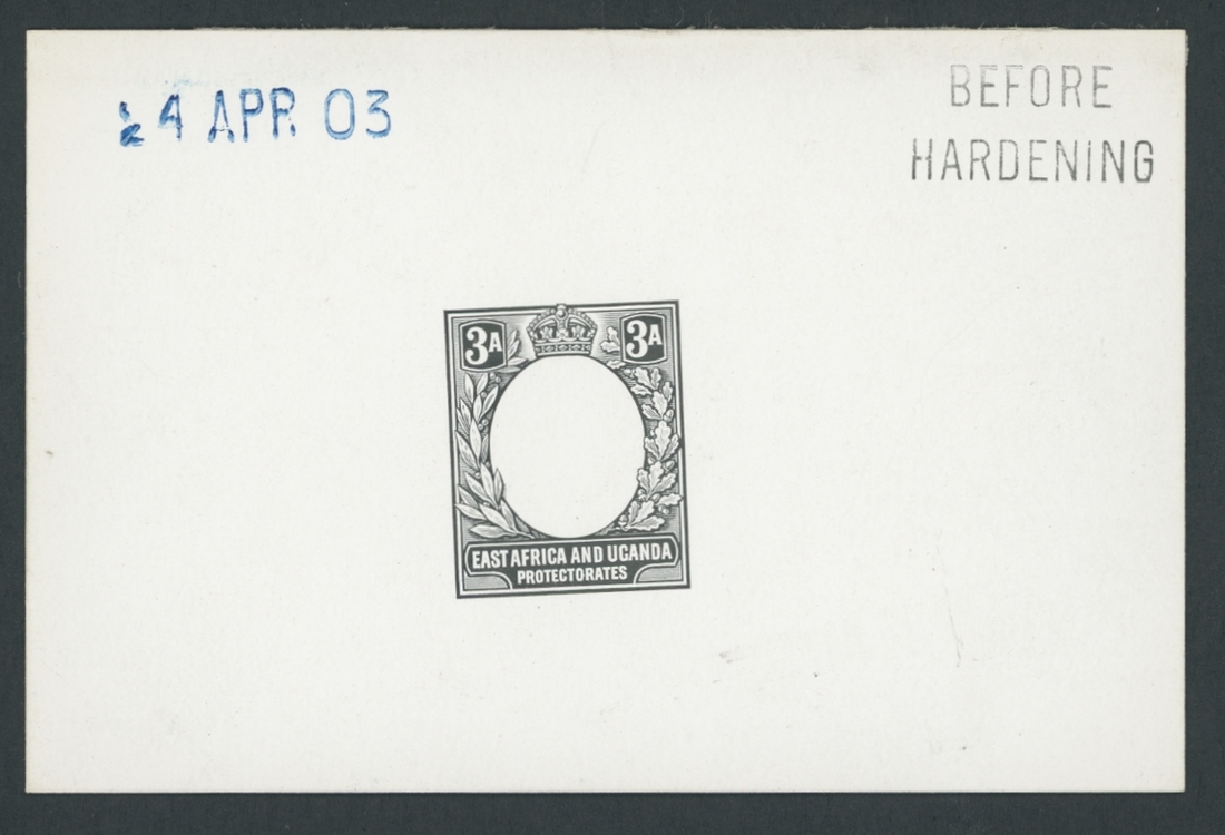 3a. die proof with blank vignette in black on white glazed card (92 x 60mm.), marked