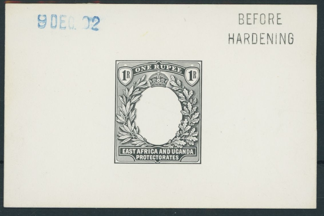 1r. die proof with blank vignette in black on white glazed card (92 x 60mm.), marked