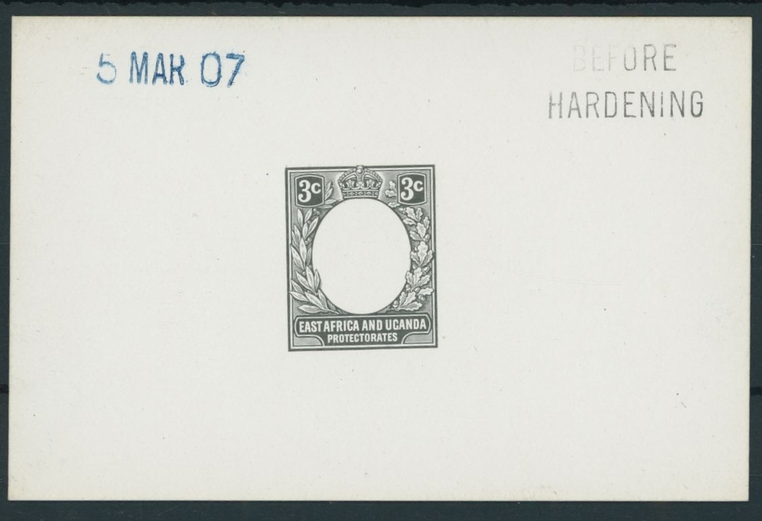 3c. die proof with blank vignette in black on white glazed card (92 x 60mm.), marked