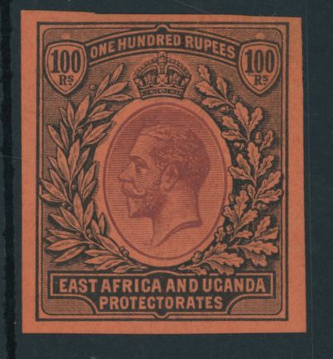 100r. purple and black on red imperforate plate proof on gummed watermarked paper; very fine and rare. R.P.S. Certificate (1969). S.G. 62 var.