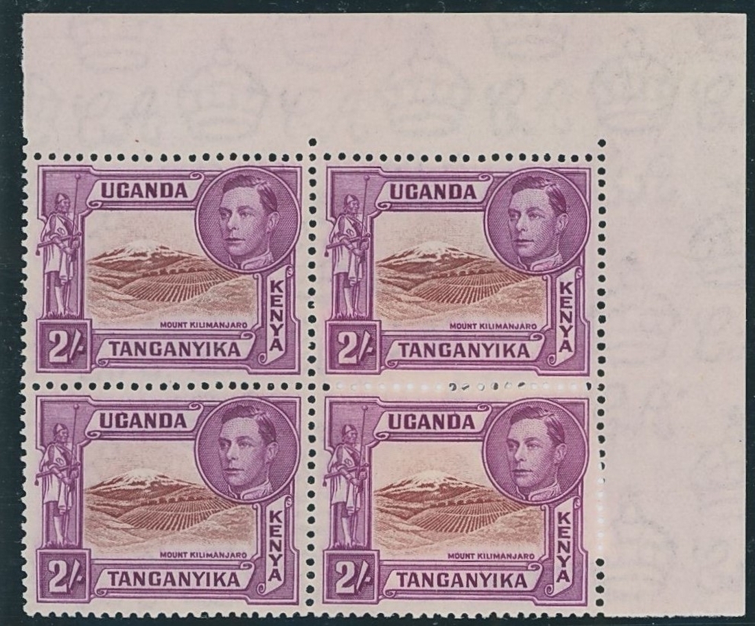 2/- maroon and bright mauve, perf 13¼, an upper right corner block of four. S.G. 146 / CW 5