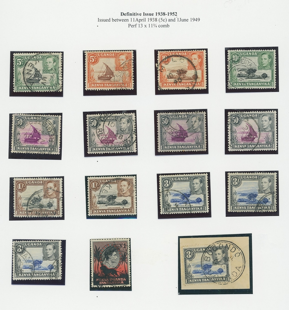Perf. 11¾ x 13 used group to £1 (15) and all with first day cancellations, perf. 13¼ x 13¾ group (24) including 2/- pair, 3/- (4 shades), 5/- and 10/- (6, including a pair), perf. 13¼ comb group (9) with 2/- (2), 5/- and 10/- (2) and two 2 May 1938 first day covers, one to London and the second to Bermuda; a good to fine group