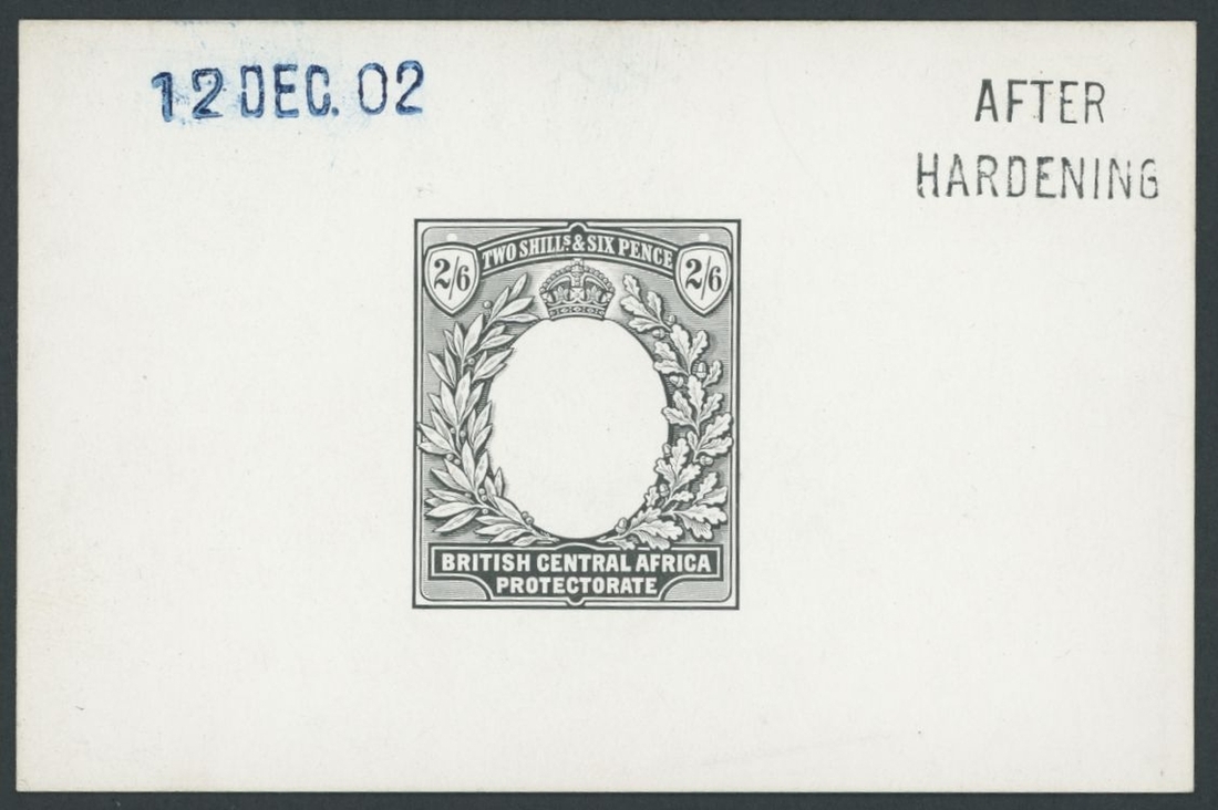 2/6d. die proof with blank vignette in black on glazed card (92 x 60mm.), marked