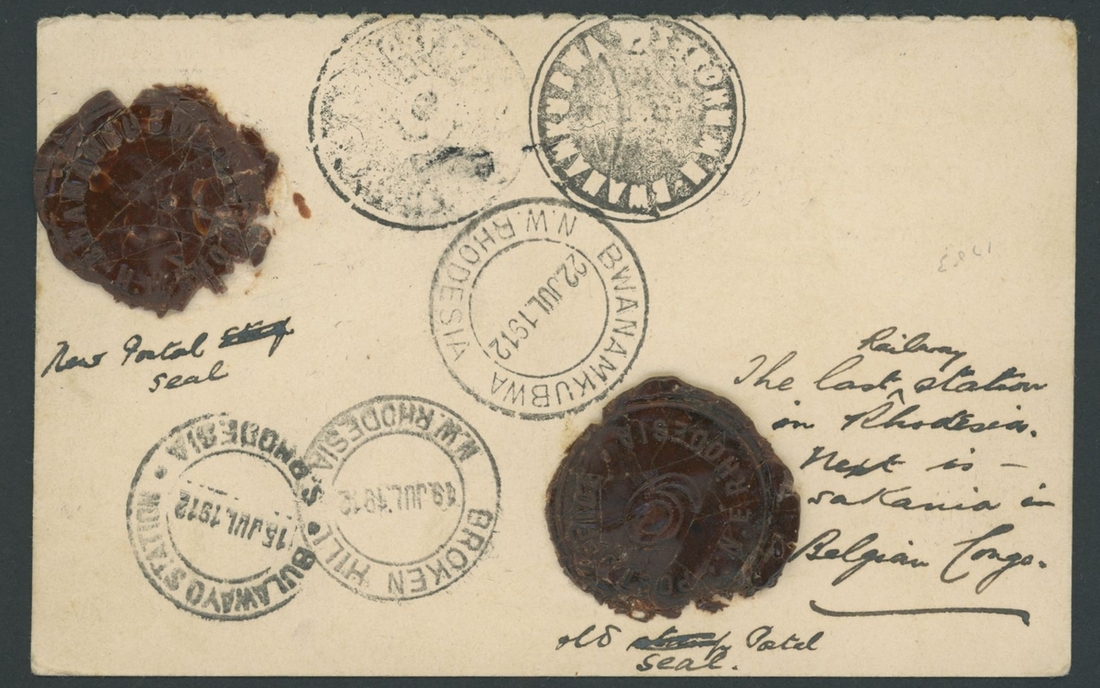 "As I am collecting the postmarks of all post offices in South Africa for my private musuem, containing anything connected with the postal, telegraphic and telephonic communications in Africa you will oblige me very much by returning to me the annexed reply card. When obliterationg it please take care the impression of your date stamp is as clear as possible"