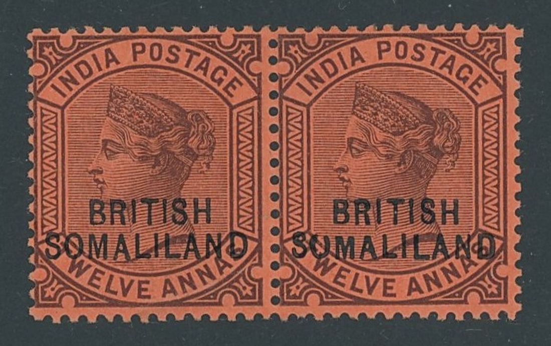 1903 12a. purple on red, horizontal pair the right stamp variety