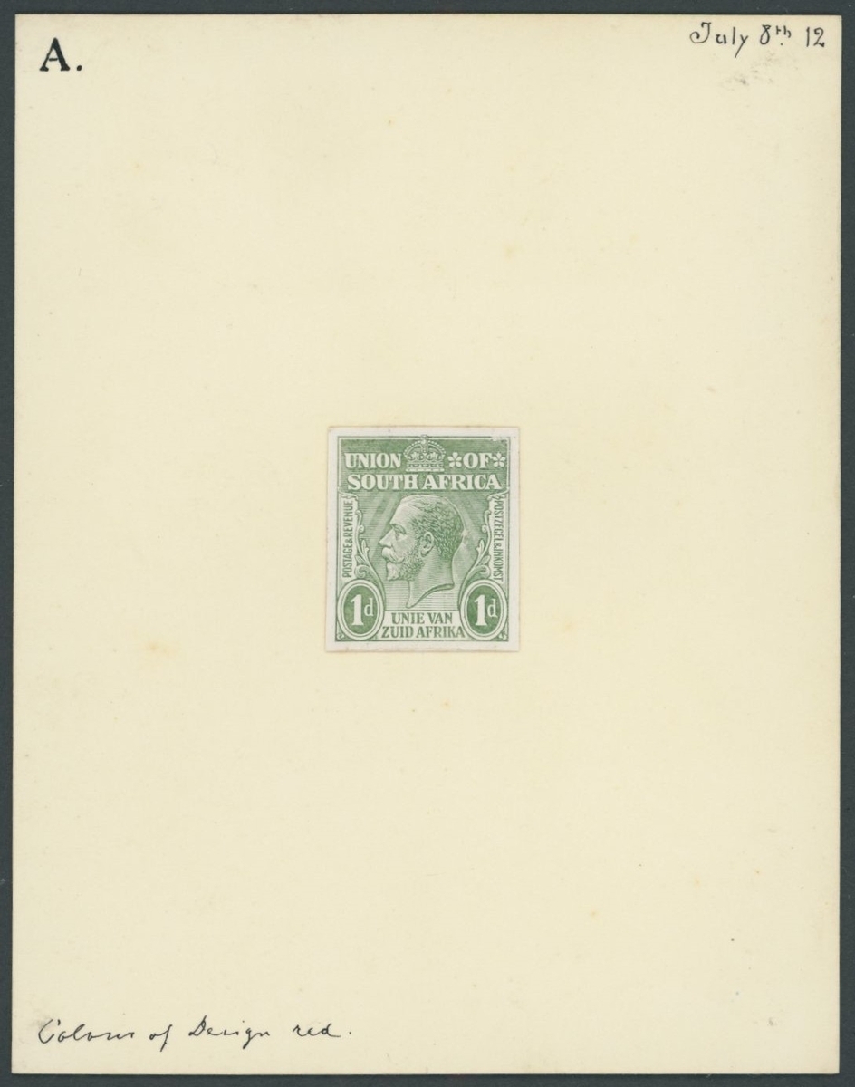 1d. design in green, mounted on card (88 x 115mm.) lettered