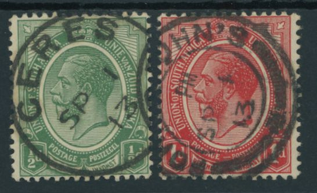 ½d. green and 1d. scarlet, both with first day of use cancellations of 1st September 1913; fine and rare. P.F.S.A. Certificate (1958) for the 1d.