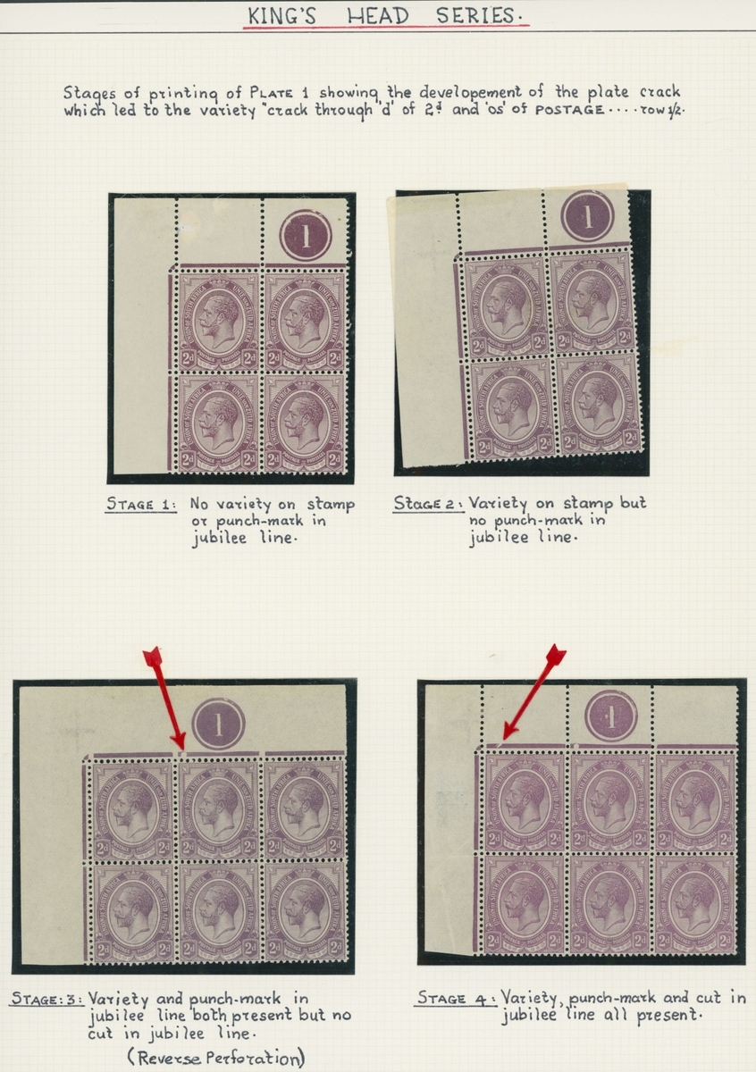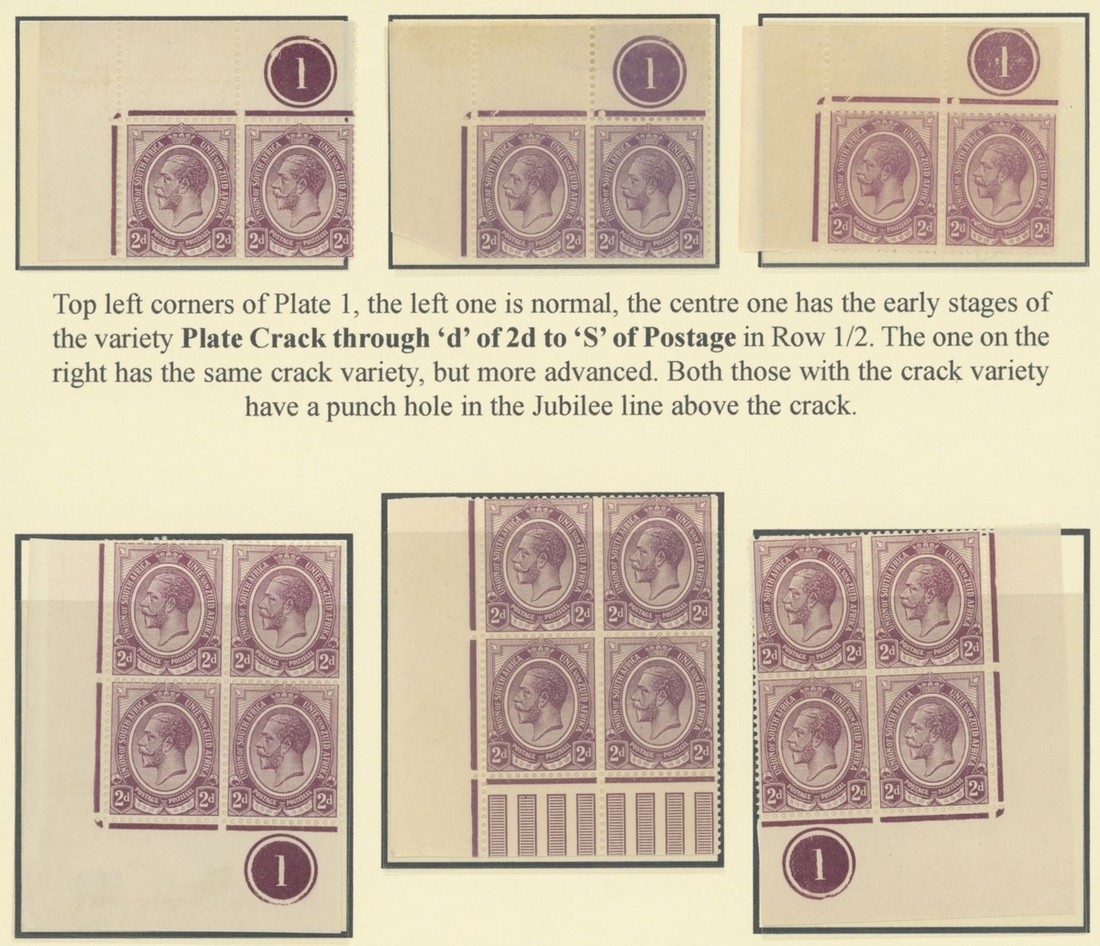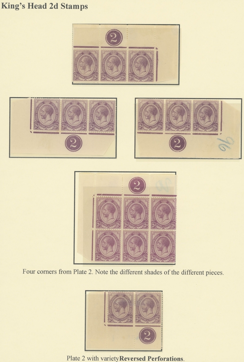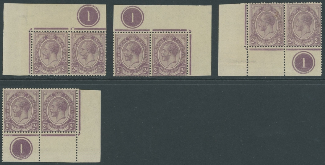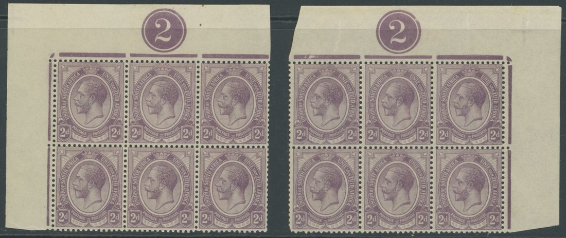 A group of Plate 1 and 2 multiples on pages including a range of singles, pairs, blocks of four and blocks of six from all corners of the sheet from Plate 1 along with a range of other blocks of four and six and Plate 2 including blocks of six from all corners of the sheet along with some other blocks; a fine group also showing a range of shades