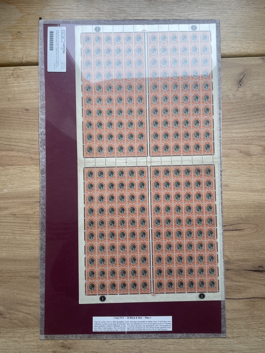 3d. black and orange red, a complete sheet of two-hundred and forty comprising four panes of sixty with plate numbers '1' at top and bottom; fine mint, a very rare complete sheet. S.G. 8, £3,120
