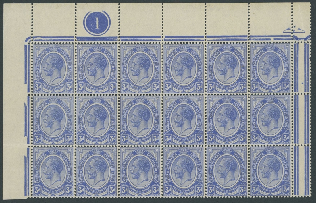 A group of mainly Plate number mint multiples (19) including an upper left corner block of eighteen, corner blocks of six (2), corner blocks of four (9) including one of each from all corners of the sheet, corner pairs (4) and a couple of other blocks without plate numbers; fine mint