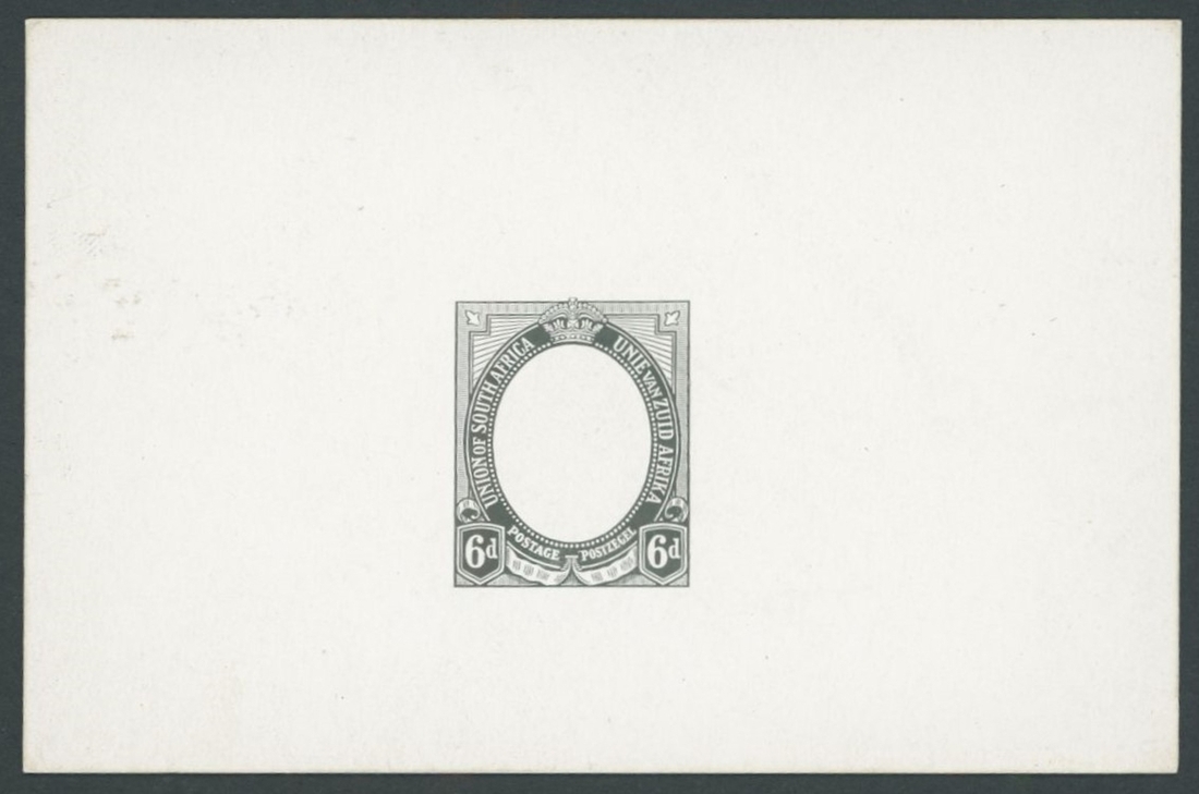 Die proof of the completed frame of the 6d. value in black on white glazed card (82 x 60mm.), with no annotations or date; fine