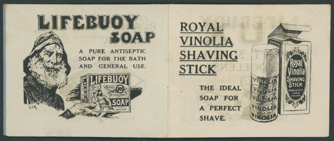 1920 mock-up of a prospective booklet showing advertisement layout, unprinted covers in blue, and with six pages of double-side printed advertisements; fine and rare