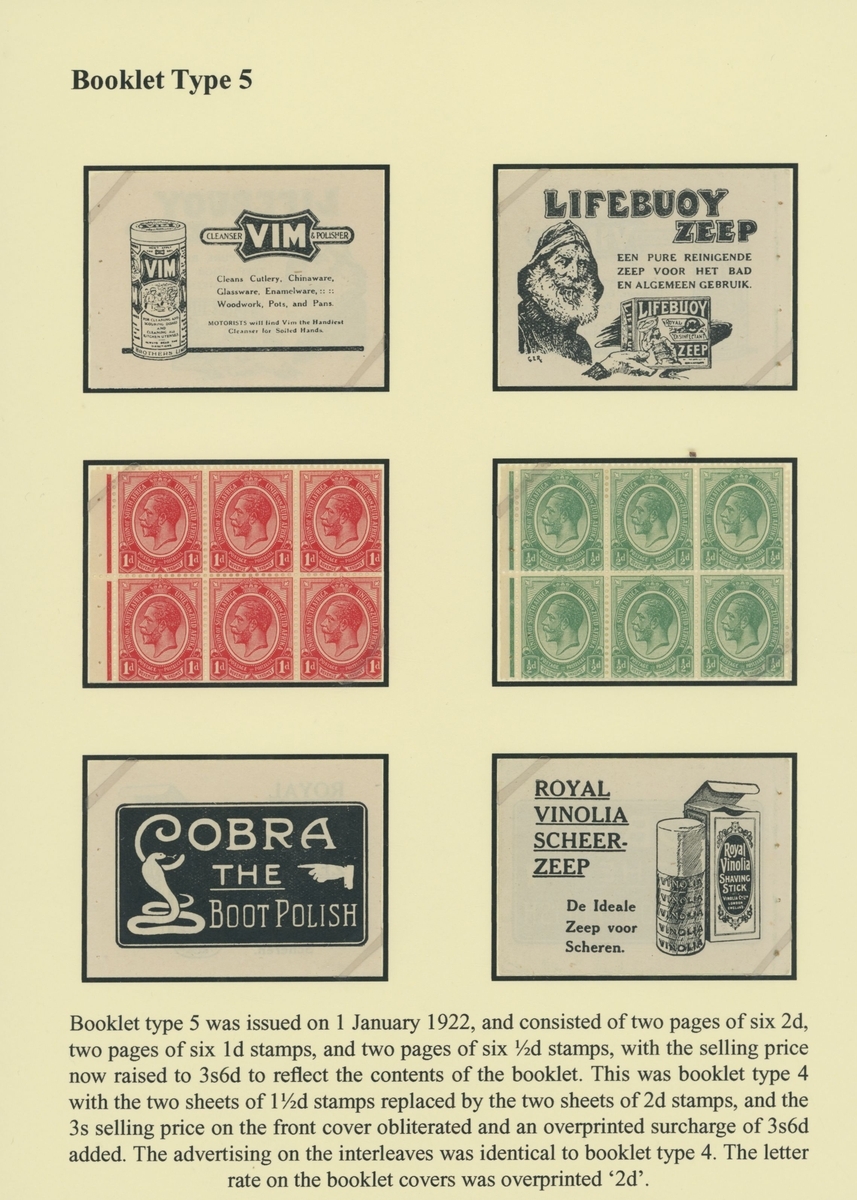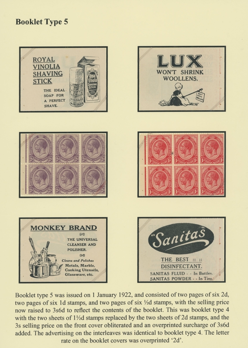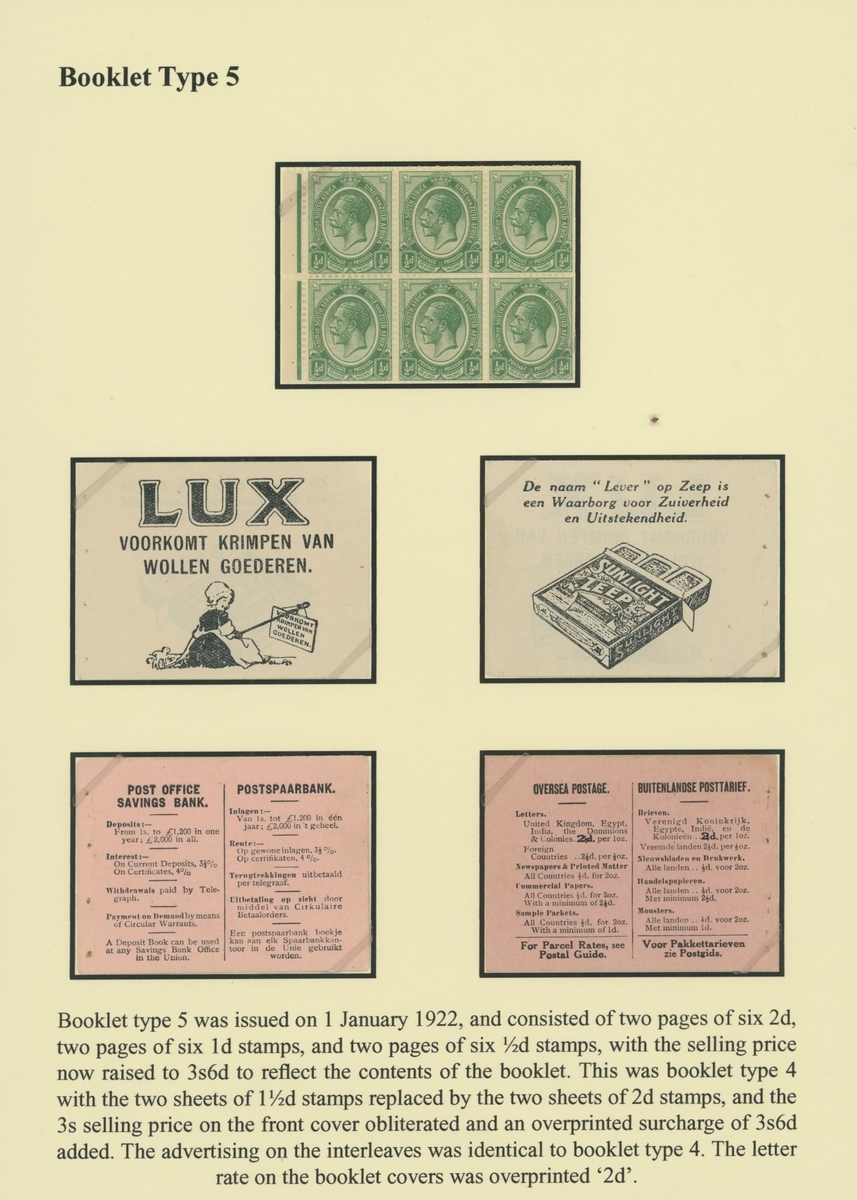 1922 3/6d. on 3/-, Type 5 exploded booklets with front and back covers of both Types 5 and 5a, advertising panes (12), ½d. panes (2), 1d. panes (2) and 2d. panes (2); fine