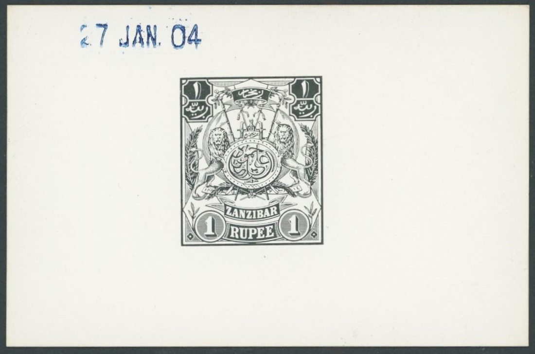 1r. die proof in black on glazed card (62 x 90mm.), dated