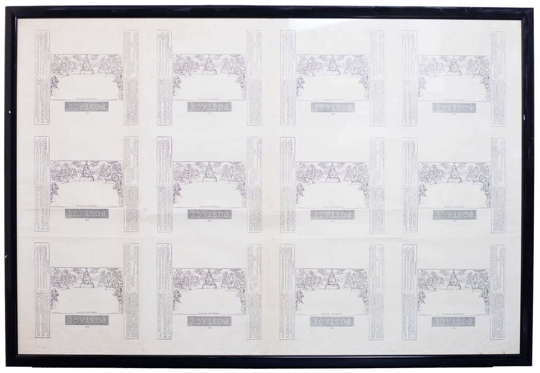 Complete sheet of twelve lettersheets arranged 4x3 with stereos A16-A19, A21-A27 and A30, variously folded though mostly between impressions, generally very fine and rare in this form. Framed (960x650mm.)
