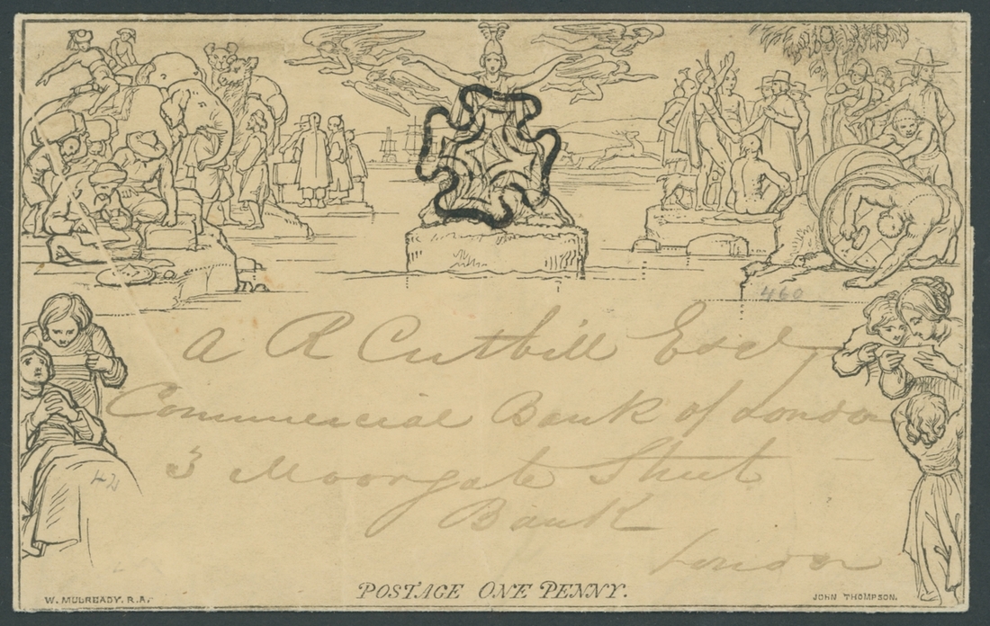 A42, with blue Family endowment, annuity, life assurance, & reversionary interest Society advertisement (Specialised MA128a), dated 19 Feb. 1841, addressed to London, superb black Maltese Cross cancellation; pre printing paper crease at left, some small imperfections but wonderful appearance