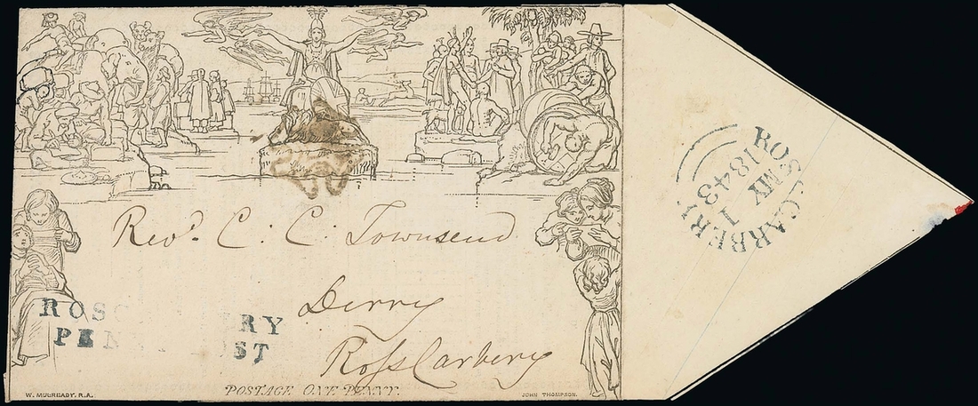 A170, dated 1 May 1843, with blue Scottish provident institution for assurances and annuities on lives advertisement with manuscript Office 96 South Mall at lower right  (Specialised MA142a), addressed to Rosscarberry with light black Maltese Cross cancellation and fair blue "