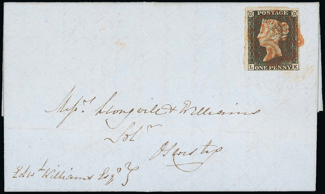 LK, clear to large margins, tied to entire letter from Wrexham to Oswestry by red Maltese cross, used on 30th. May 1840 with very clear