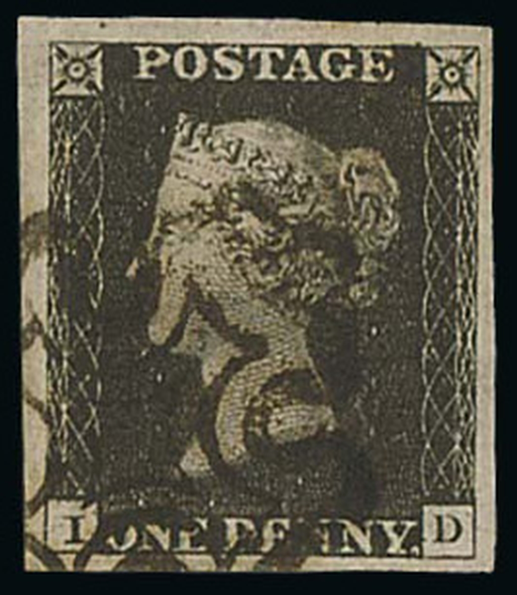 ID (re-entry), intense black shade, black Maltese Cross cancellation,  good to huge margins, very fine. An exceptional example