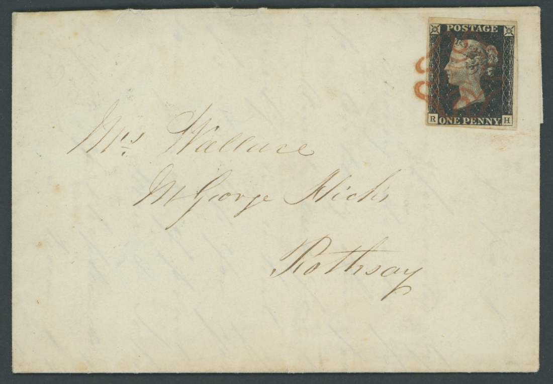 RH. good to very large margins all round,  tied by red Maltese Cross cancellation to entire letter from Derry to Rothsay (Isle of Bute) dated 11 Aug. 1840; minor soiling but rare usage