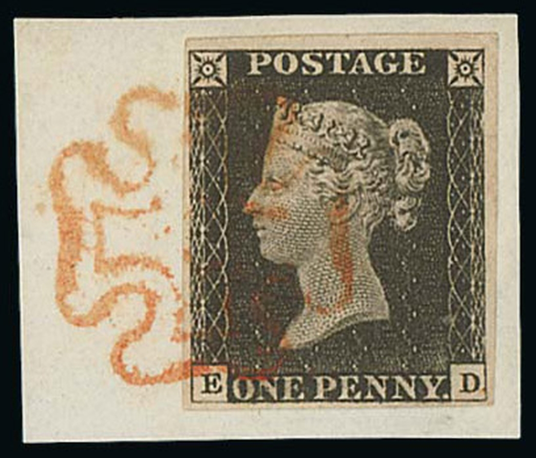 ED, slightly worn impression, small to good margins, tied to piece  by complete and upright red Maltese Cross cancellation. Fine and highly appealing