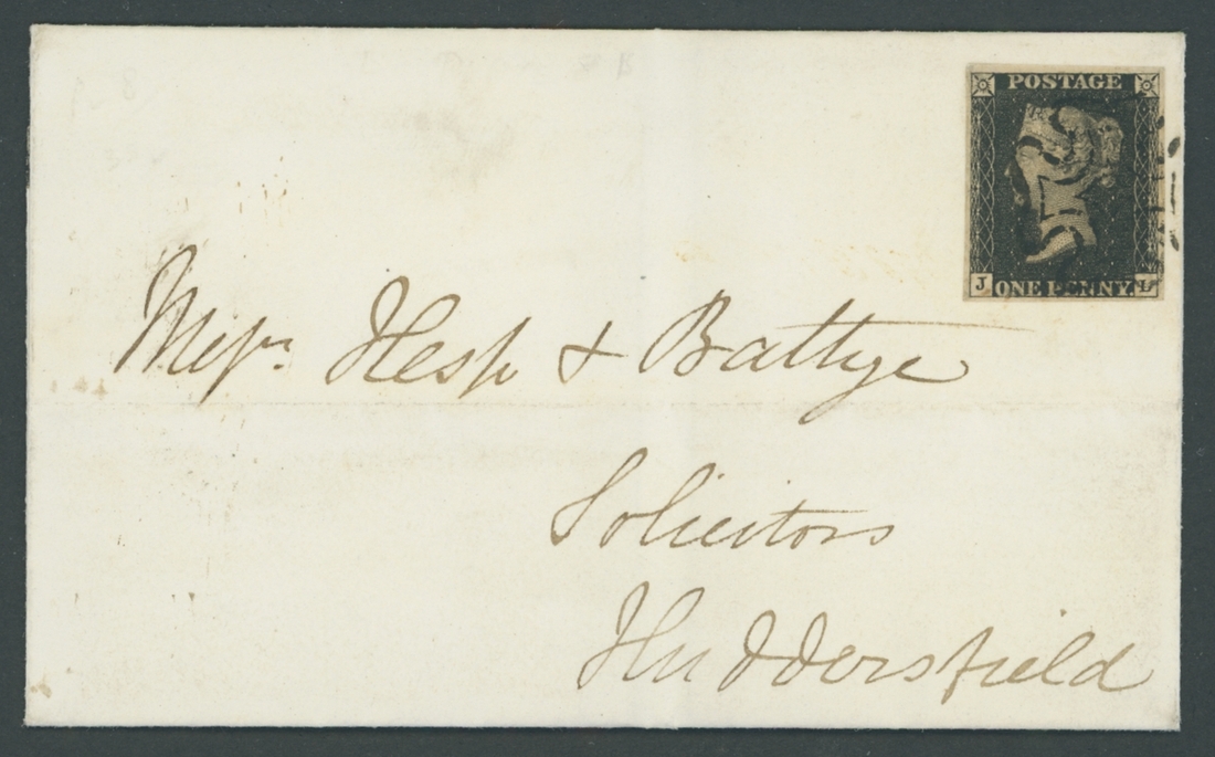 JD, small to good margins all round, tied by black Maltese Cross to mourning entire to Huddersfield,  dated markings of May 13 and 14 1841 on reverse; filing fold well clear of the adhesive. Attractive