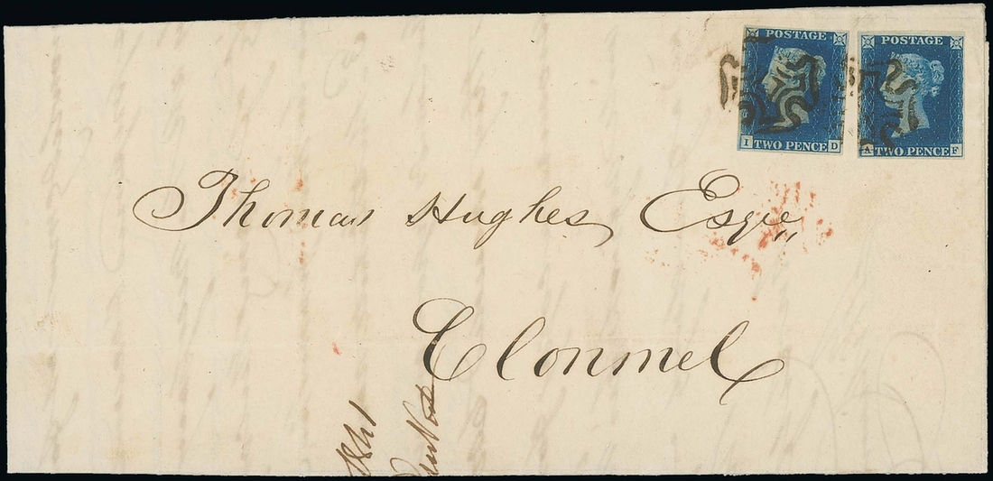 AF and ID, small to good margins all round, tied by black Maltese Cross cancellations to long entire letter from Dublin to Clonmel, dated markings of Nov. 15 and 16 1841 on the reverse; fine usage within Ireland
