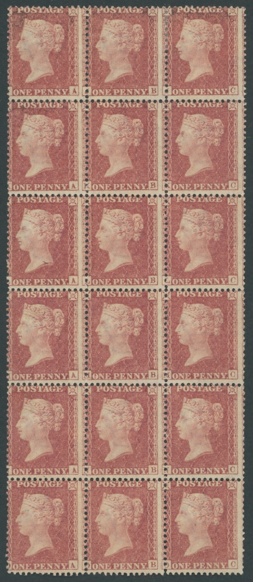 Plate 36: JA-OC pale red, block of eighteen,  large part original gum, perforation shifted to the right, scarce multiple. P.S.A. Certificate (1985) Specialised C9 (3) £7,650