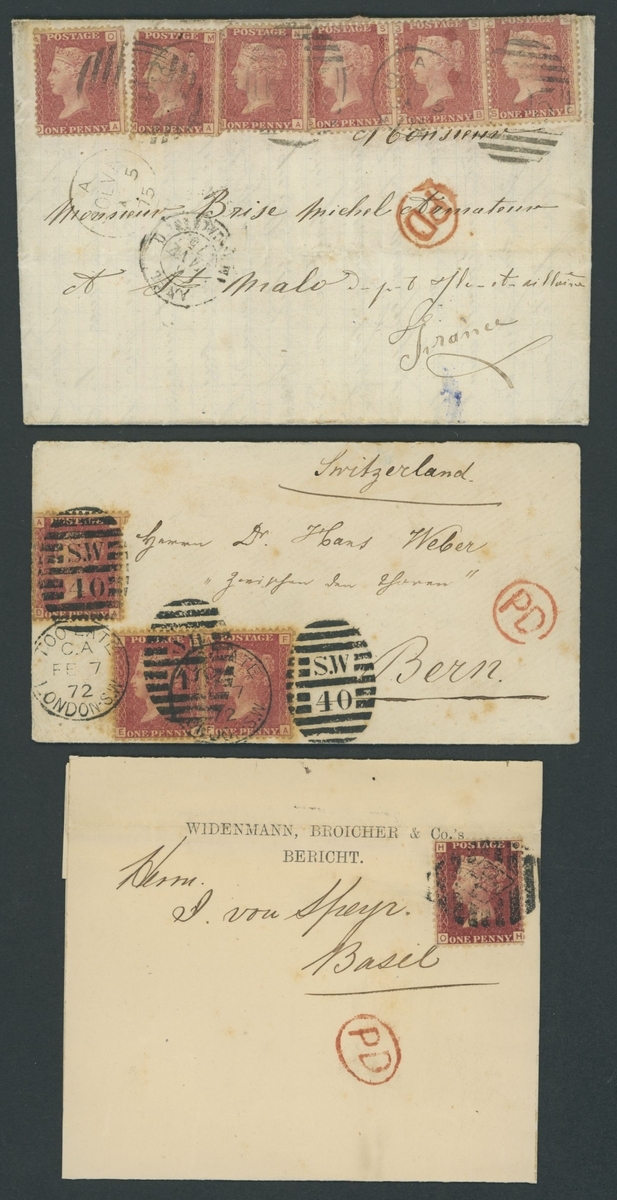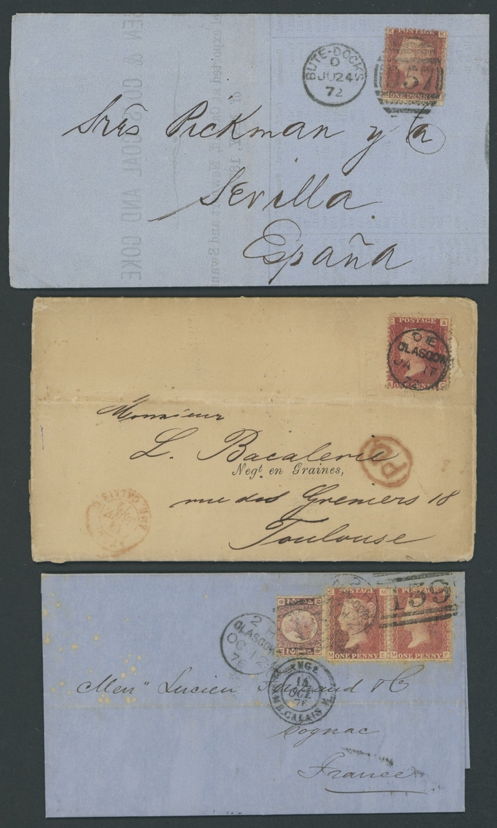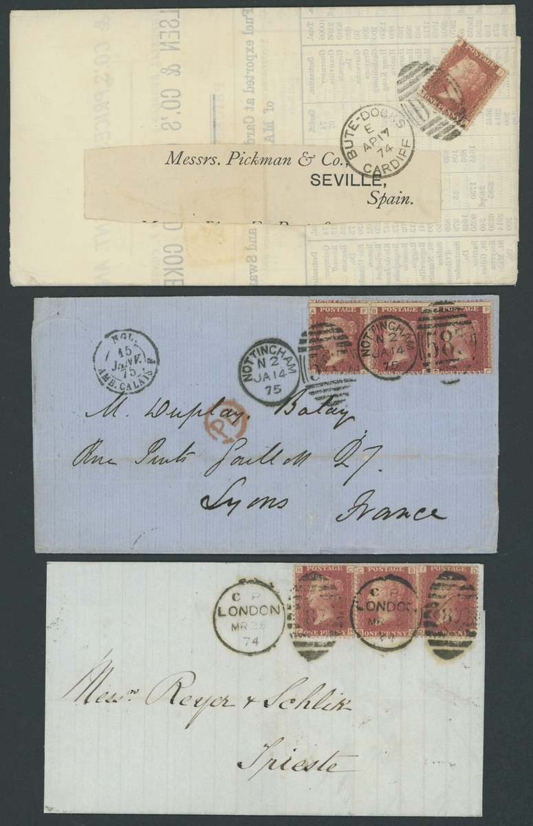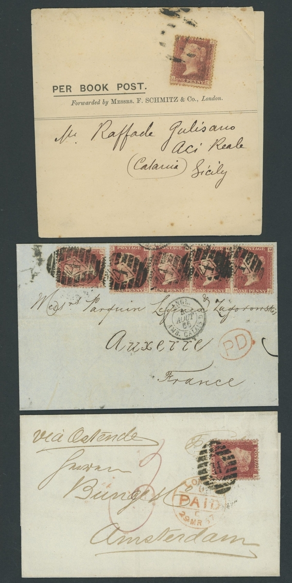 Selection of thirty entires, wrappers or envelopes addressed overseas,  destinations including Austria, France, Germany, Italy, Netherlands, Spain, Sweden, Switzerland, etc., mostly single 1d. frankings but some multiples; chiefly good to fine