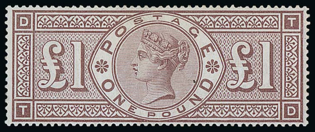 £1 brown-lilac, TD, wonderful, full original gum with only the barest traces of mounting, superb freshness and an important rarity as such, S.G. 186,  £45,000