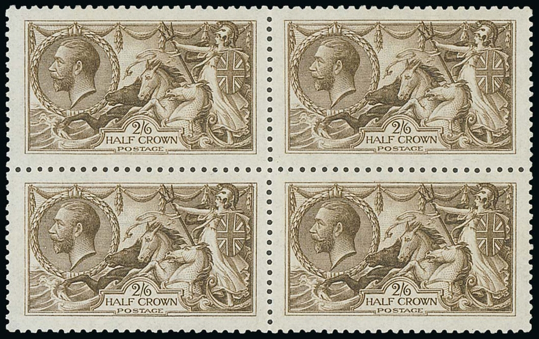 2/6d. sepia (seal-brown), a block of four; lightly mounted on two stamps only, very fine and fresh. S.G. 408, £1,750+
